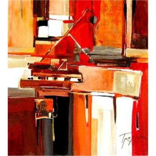 Yuri Tremler <p>Original Serigraph <p>Hand Signed and Numbered by the Artist Yuri Tremler <p>Title: " Piano In Red "<p>Size: 31" x 28" <p>Edition Size: 480<p>Condition: Mint<p>Yuri Tremler was born in the Ukraine in 1961. He Attended the College of Arts in Kharkov. Later he continued his studies at the Kharkov Art & Design Academy and the Gall Design School in Germany, and worked as a theater decorator as as interior designer.<p>In 1996 Tremler immigrated to Israel, where he tried his hand in crafts and jewelry, further refining his sensibilities regarding texture, shape and function. In Israel many new materials became available to the artist - multimedia of acrylics, pastes and varnishes opened a whole range of new possibilities to Tremler. After two years he became a full time painter; exhibiting his works regularly in Israel and the United States.<p>Between 1988 and 2003 Tremler created a large body of paintings, which have combined both figurative and abstract approach His closely related compositions show female silhouettes and goblets, flowers and vases, often playing with the use of light, all within the context of interior settings. Yuri's concentration on color and texture is paramount. The artist reflects: "Besides the search for a new language in the decorative painting, I am Intrigued by the contrast between shiny and matte surfaces, planes and volumes".<p>His paintings please the eye with a richness of color, a great sense of color balance and confident brushwork. ...