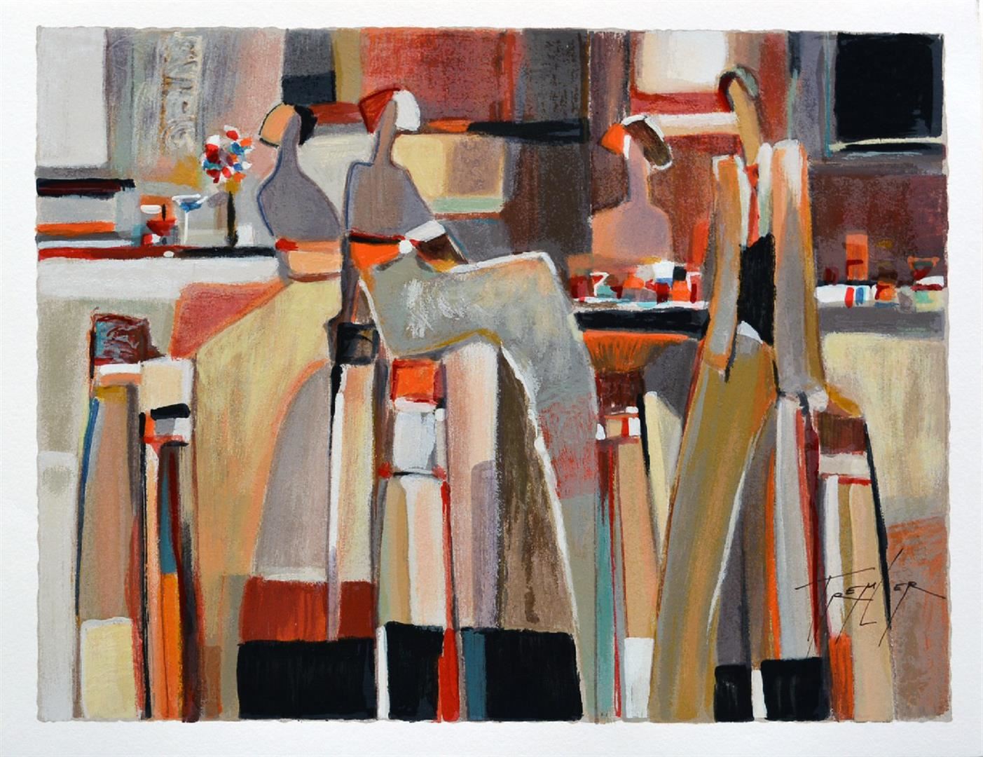 Artist: Yuri Tremler - Title: Untold Story - Medium: Serigraph on Fine Art Paper - Signature: Hand-signed by the Artist - Limited Edition: 480 - Image Size: Approximately 14 inches x 19 inches - Paper Size: Approximately 15.5 inches x 20.5 inches - Framed: Unframed - Details: This work comes with a Certificate of Authenticity - Yuri's art reminds us of sudden still-life, left after an intimate party, of time spent with friends, or shared past which still excites. Sometimes whimsical, sometimes nostalgic, Tremler's art reaches inward to basic emotions of humanity.