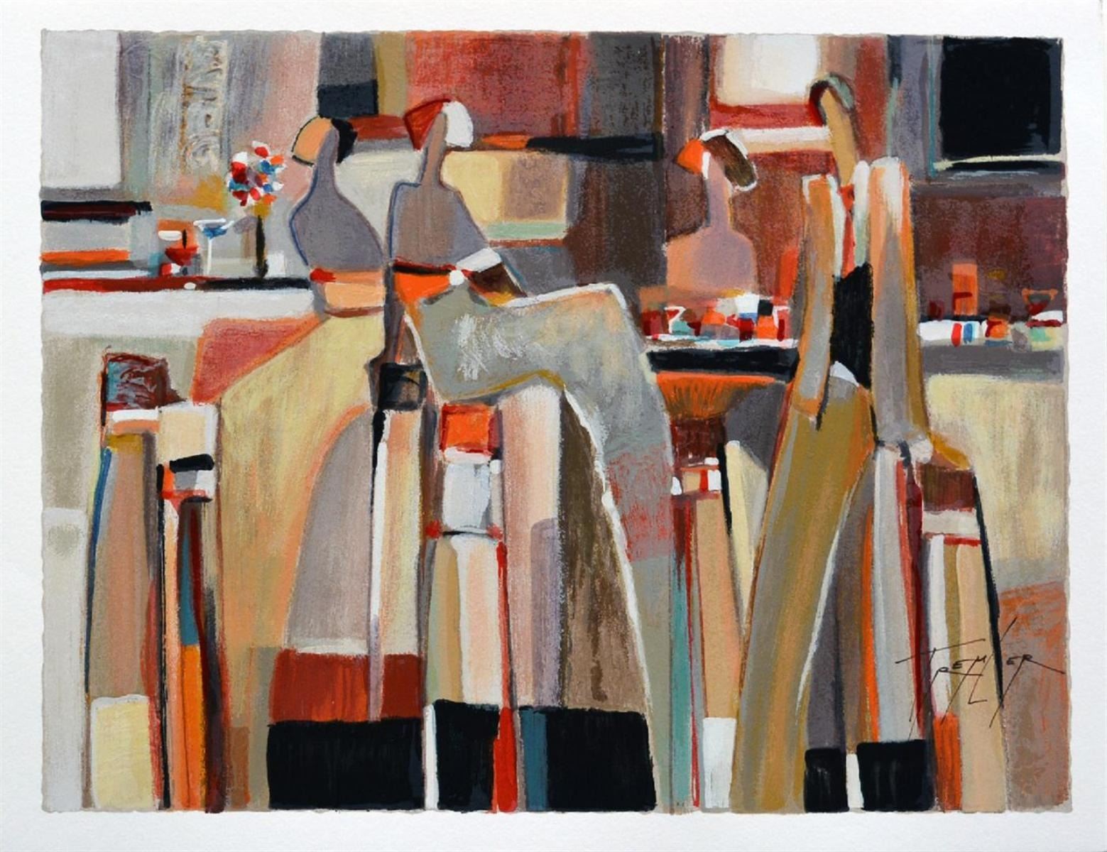 Artist: Yuri Tremler - Title: Untold Story - Medium: Serigraph on Fine Art Paper - Signature: Hand-signed by the Artist - Limited Edition: 480 - Image Size: Approximately 14 inches x 19 inches - Paper Size: Approximately 15.5 inches x 20.5 inches - Unframed - Details: This work comes with a Certificate of Authenticity - Yuri's art reminds us of sudden still-life, left after an intimate party, of time spent with friends, or shared past which still excites. Sometimes whimsical, sometimes nostalgic, Tremler's art reaches inward to basic emotions of humanity.