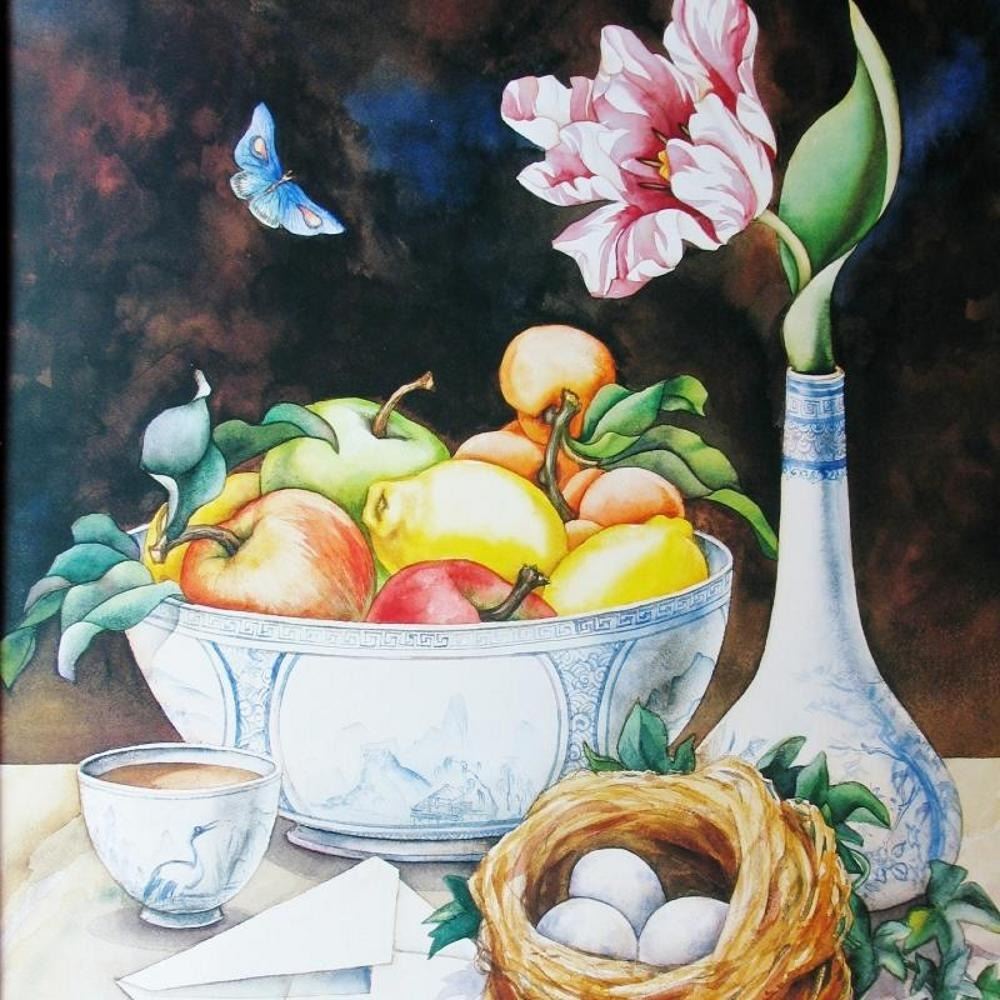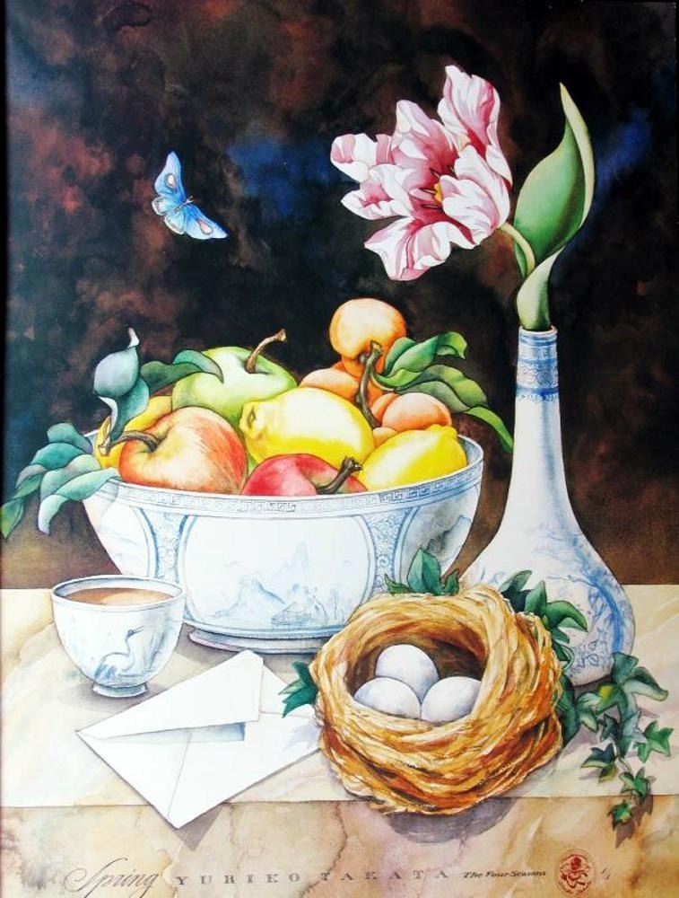 Yuriko Takata 1992 Four Seasons Colorful Print | Unframed Size: 24X18 | Offered Unframed . Framing presentation if shown is for concept only. If you need assistance with custom framing, call the experts at ArtForSale