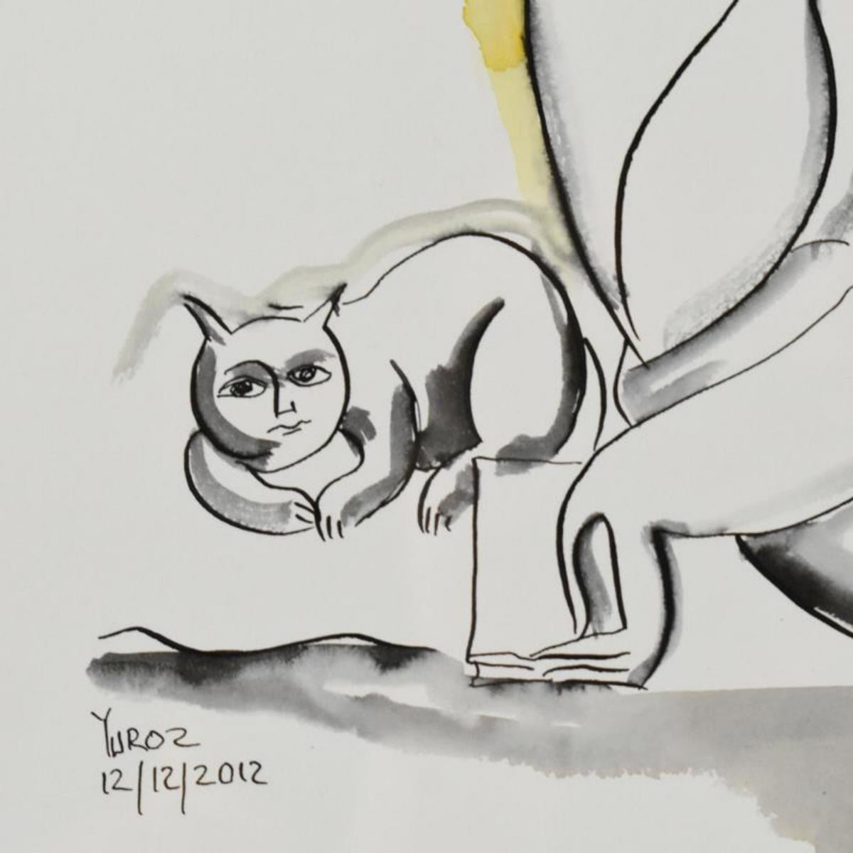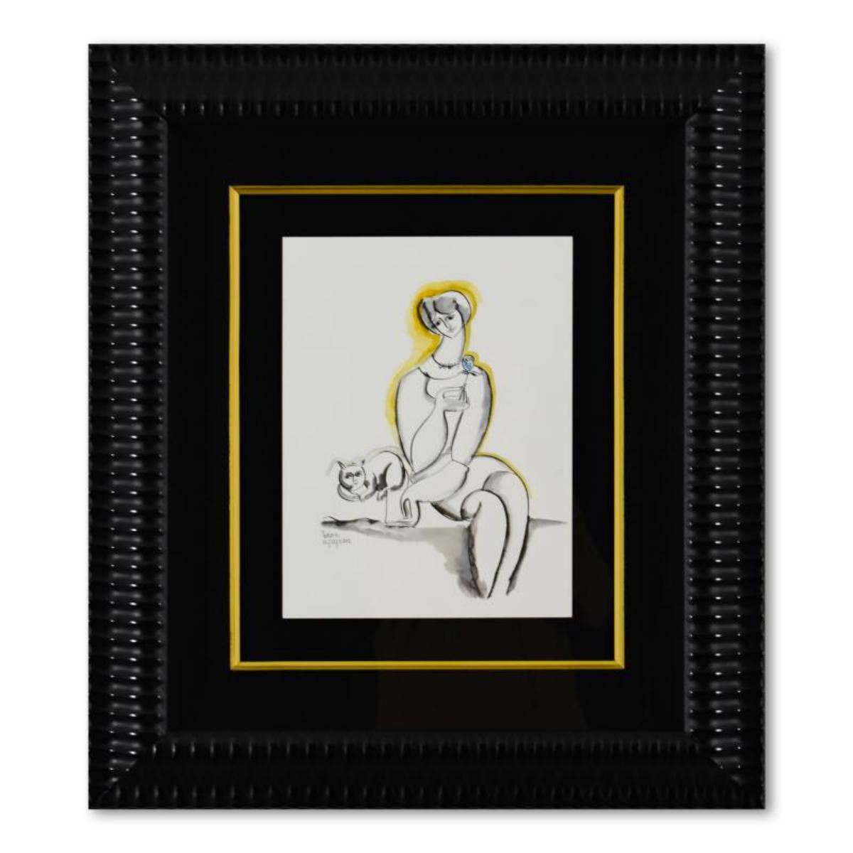 Yuroz, Framed Original Mixed Media Watercolor Painting, Hand Signed with Letter of Authenticity.