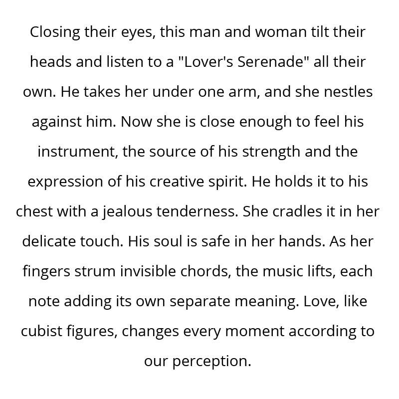 "Lover's Serenade" is a limited edition serigraph on canvas by Yruoz. The piece is hand signed by the artist, numbered, and accompanied by a certificate of authenticity. Measures approximately 40" x 30" (image).