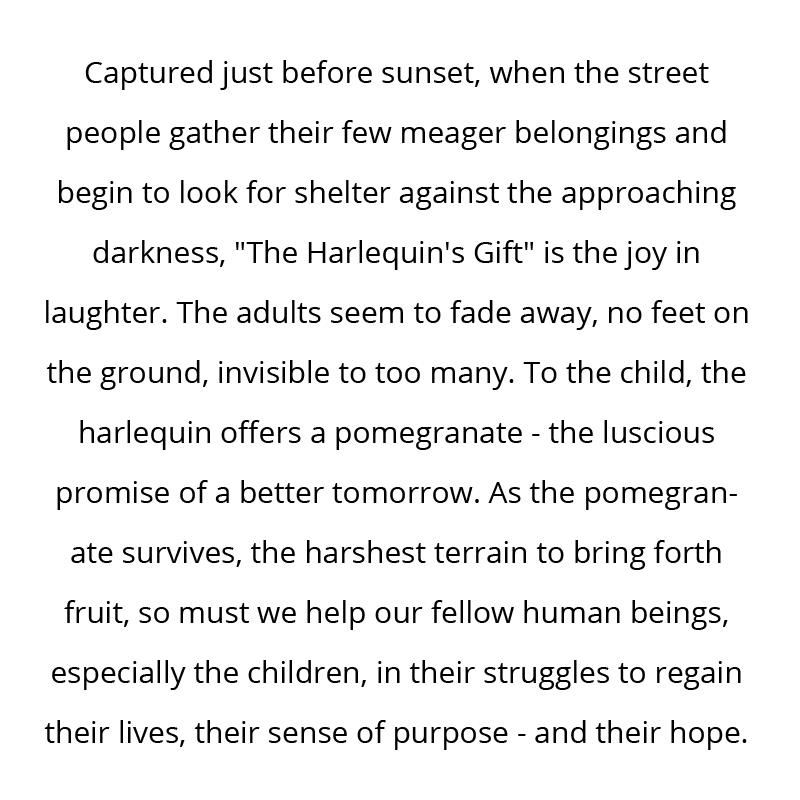 "The Harlequin's Gift" is a limited edition serigraph on canvas by Yruoz. The piece is hand signed by the artist, numbered, and accompanied by a certificate of authenticity. Measures approximately 48" x 36" (image).