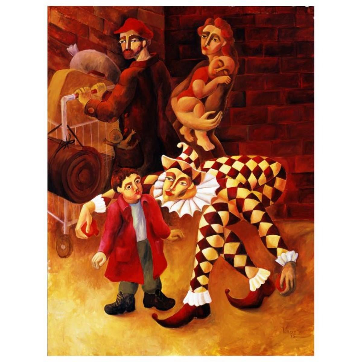 Yuroz, "The Harlequin's Gift" Hand Signed Limited Edition Serigraph on Canvas wi