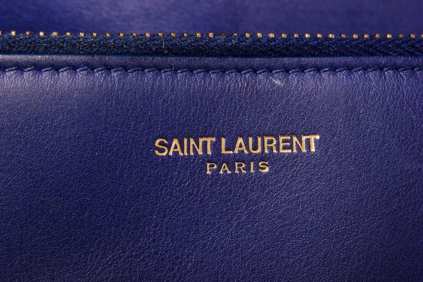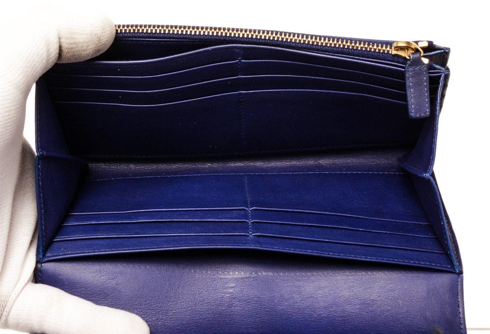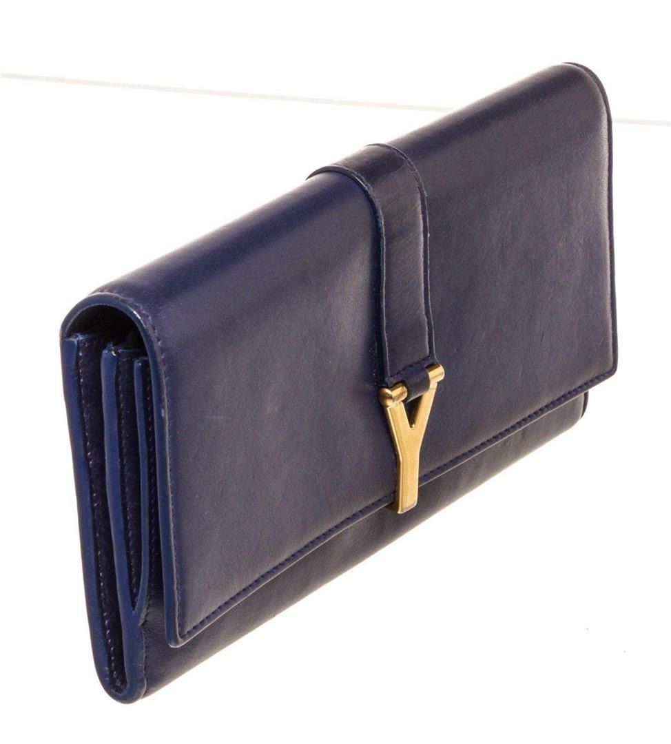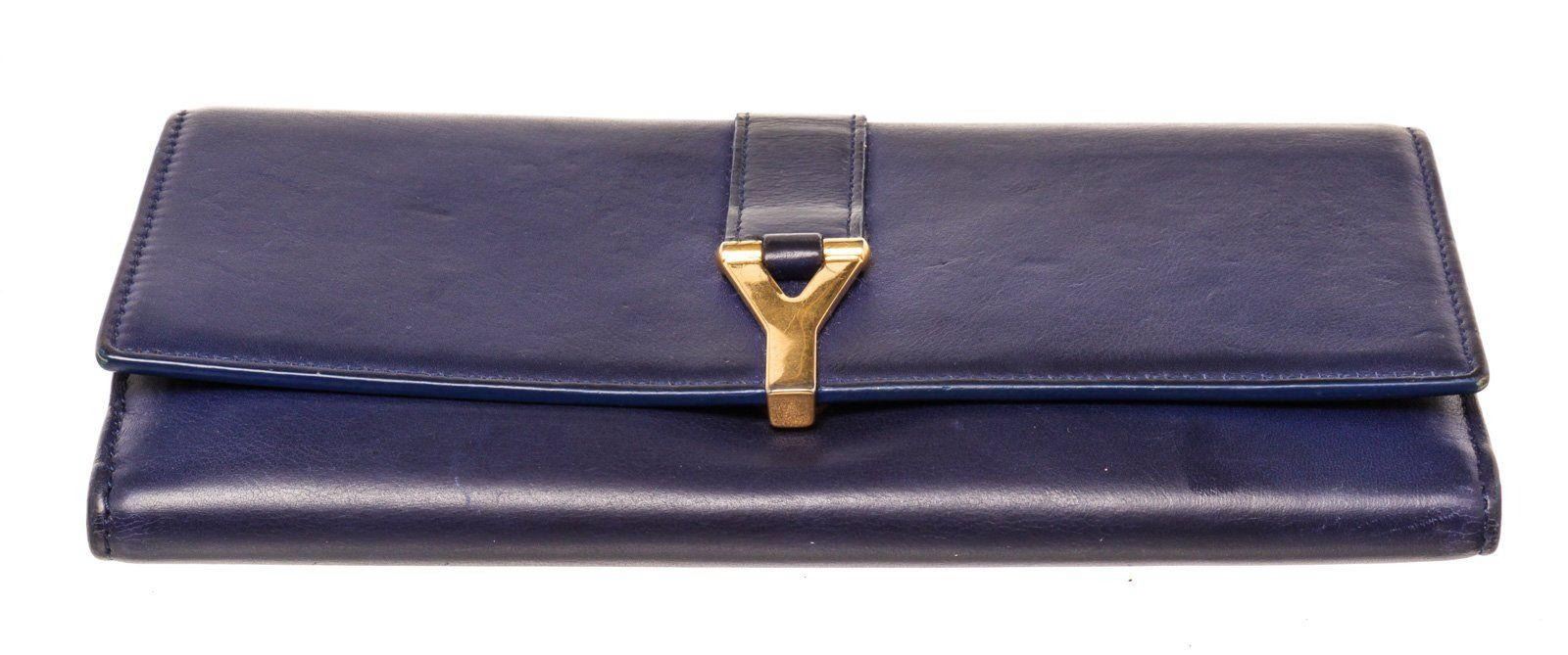 Yves Saint Laurent Purple Leather Flap Wallet with leather, gold-tone hardware, trim tan vachetta leather, interior three compartments pocket, and snap closure.