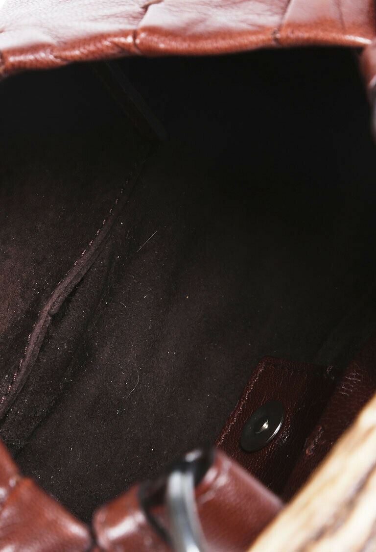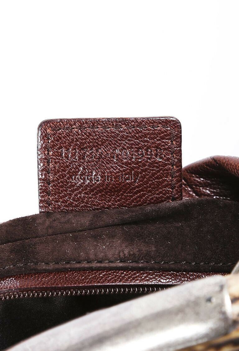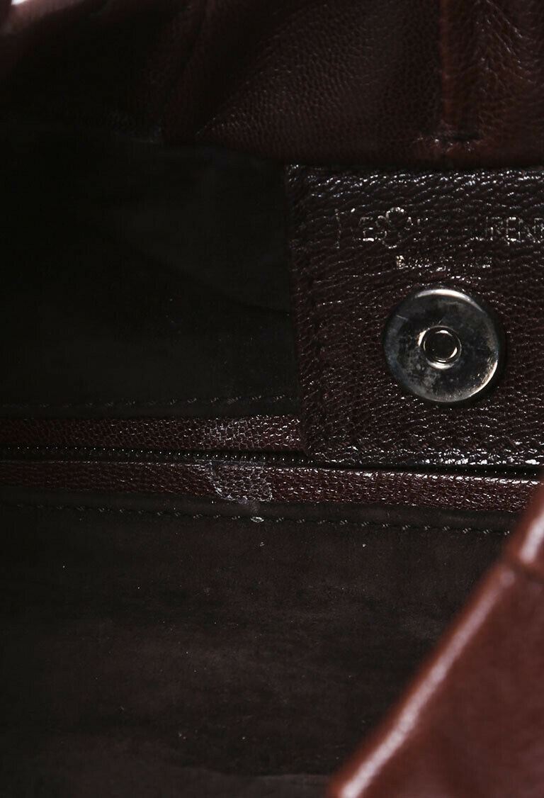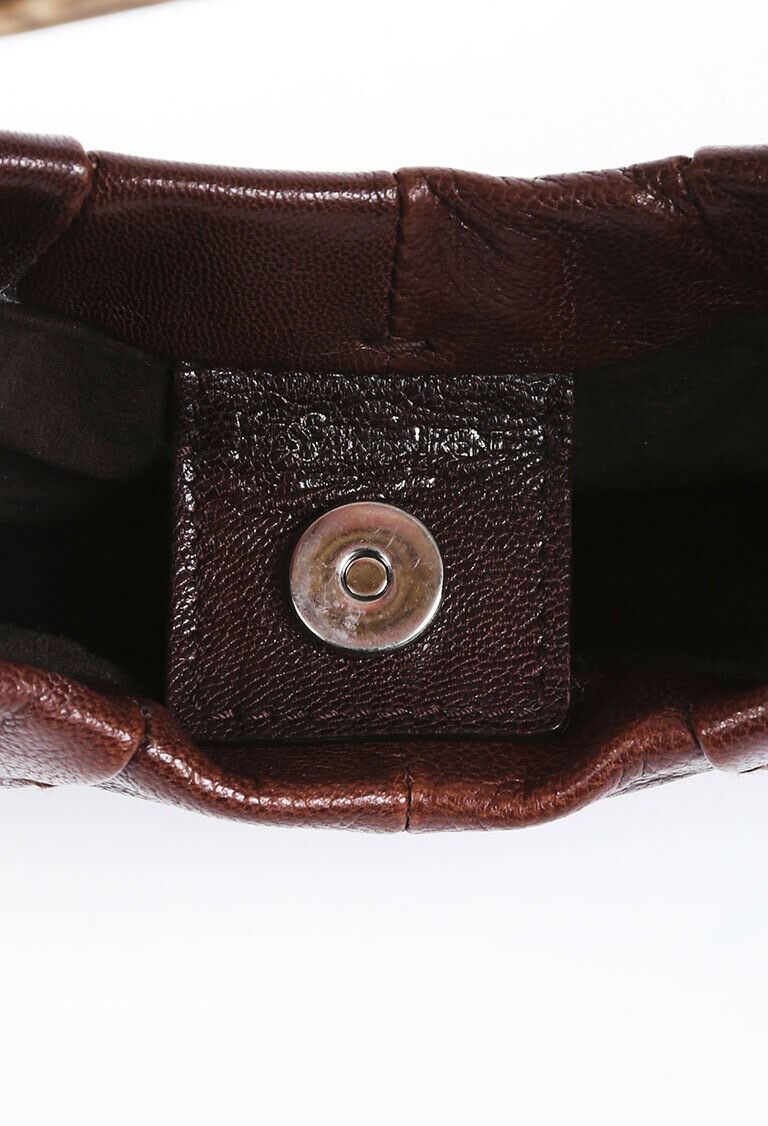 Yves Saint Laurent Mini Mombasa leather handbag features a silver tone hardware, horn handle, magnetic closure, and a suede interior with a zipped pocket.
