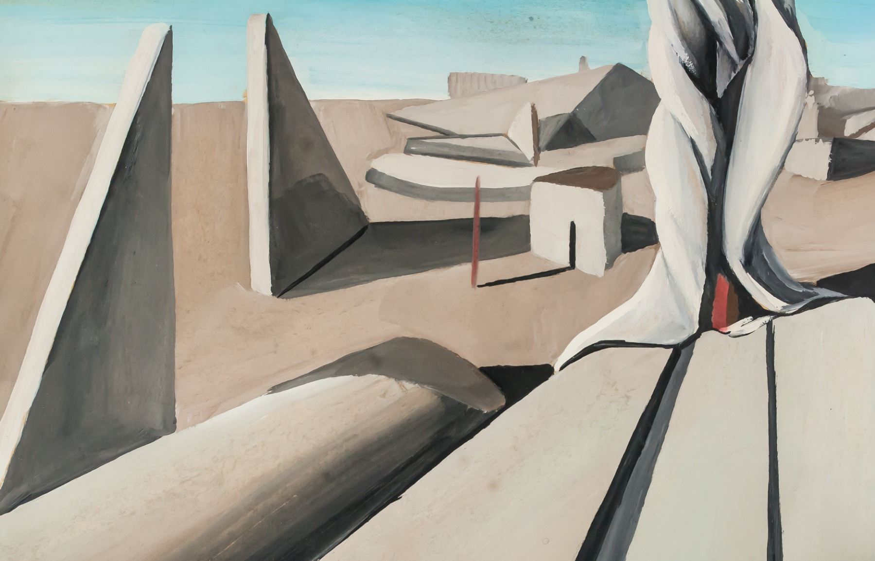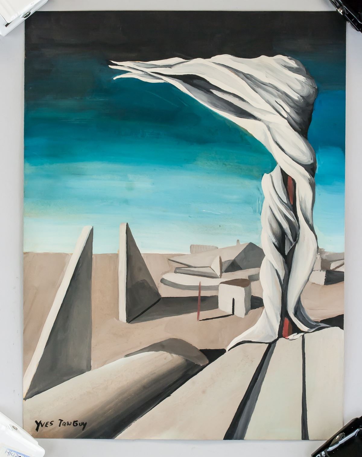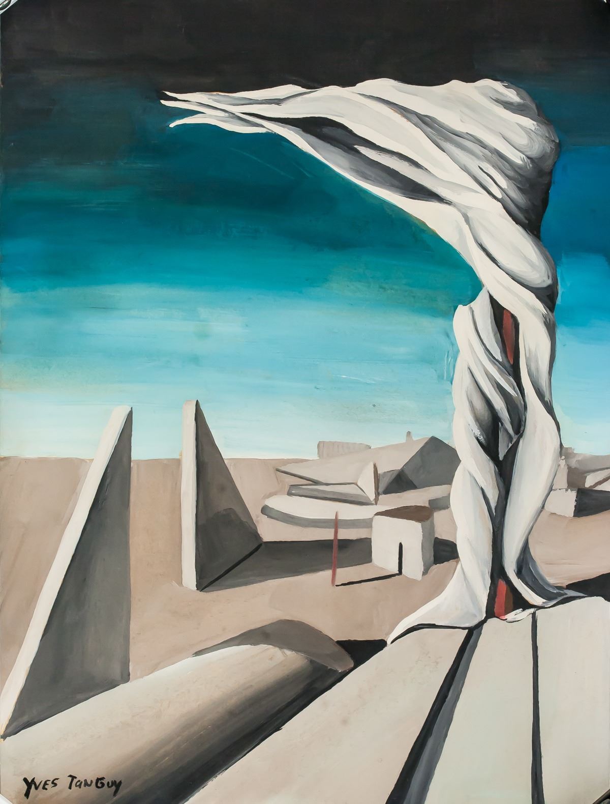 Gouache on paper. Featuring a surrealist landscape composition scene. Signed Yves Tanguy on the lower left corner. Evidence of water damage on verso. 25 x 19 cm (9.8 x 7.5 inches). PROVENANCE: Southern Ontario estate