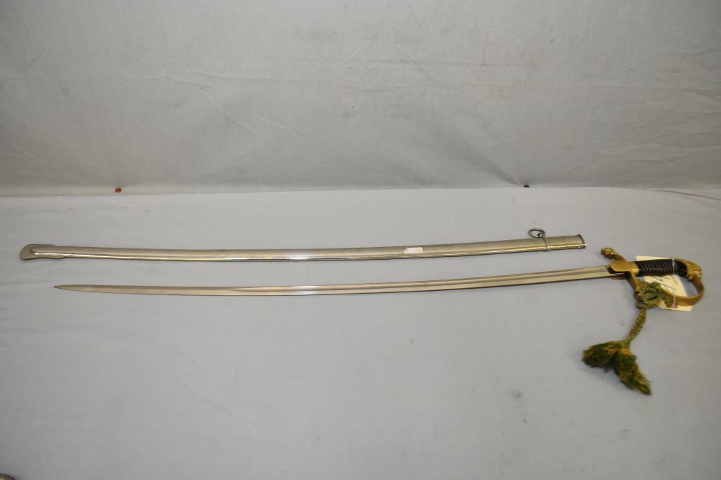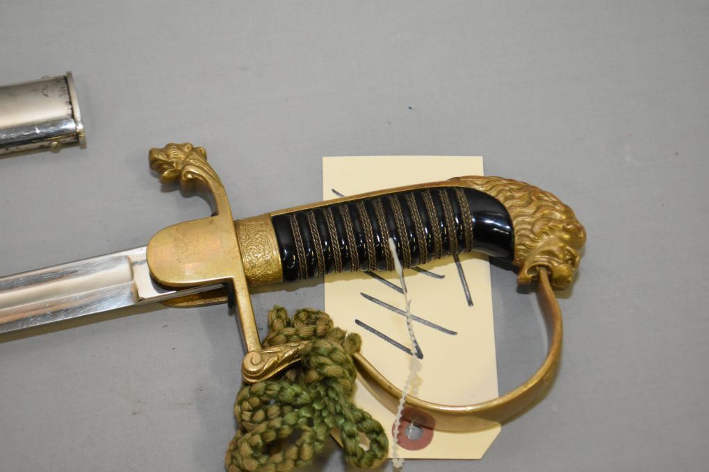 Yzerhouwer Marked Sword with Lion's Head brass hilt and handle, wire wrapped grip, w/ rope & tassels, c/w metal scabbard