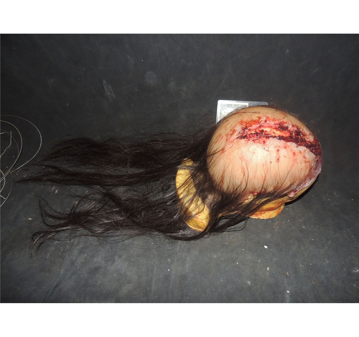 Incredibly cool axe hit to the head Zombie appliance with hair from the SYFY Hit Z NATION. On actor life cast for display.