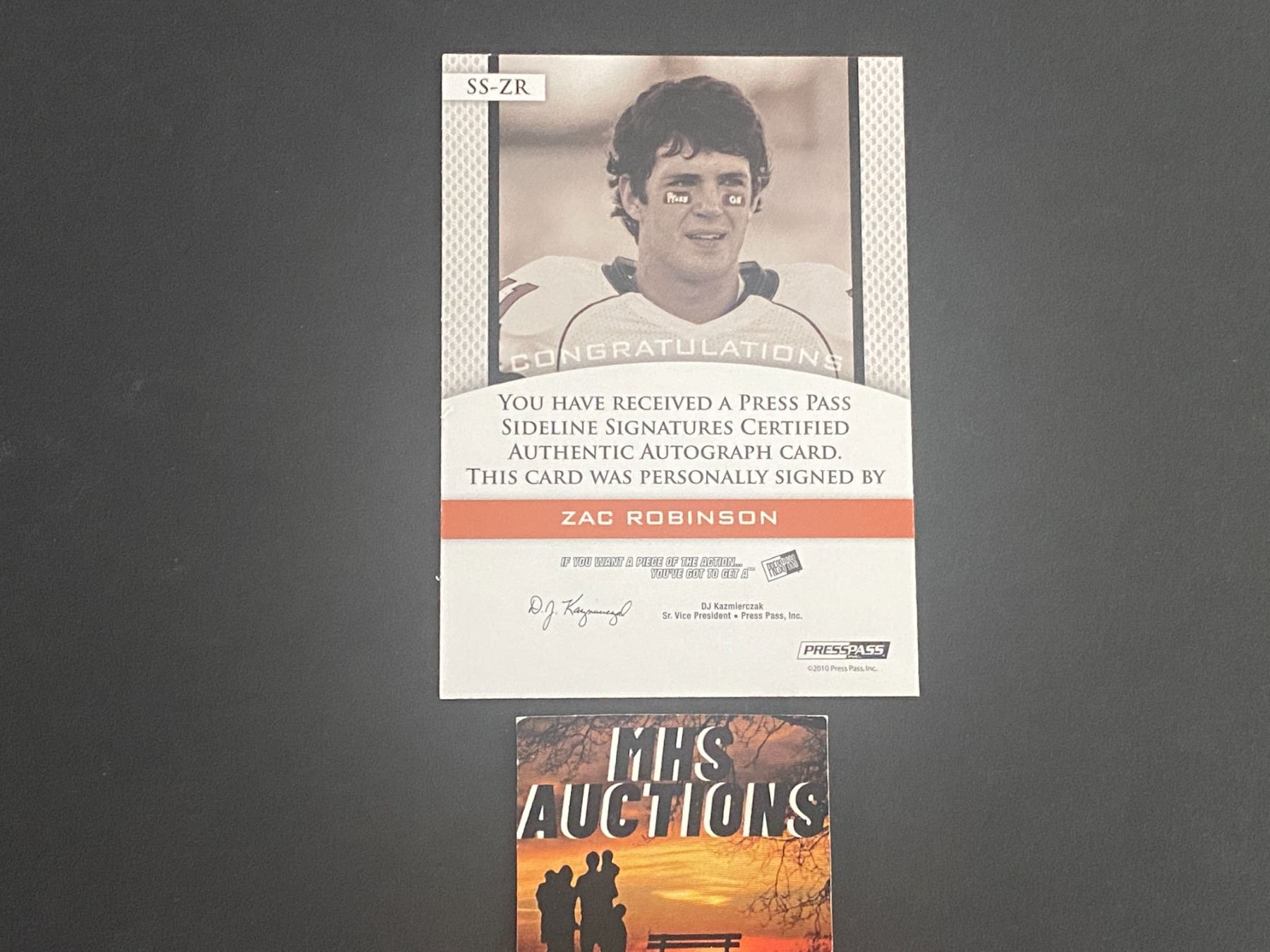 ZAC ROBINSON 2010 PRESS PASS AUTOGRAPH FOOTBALL CARD