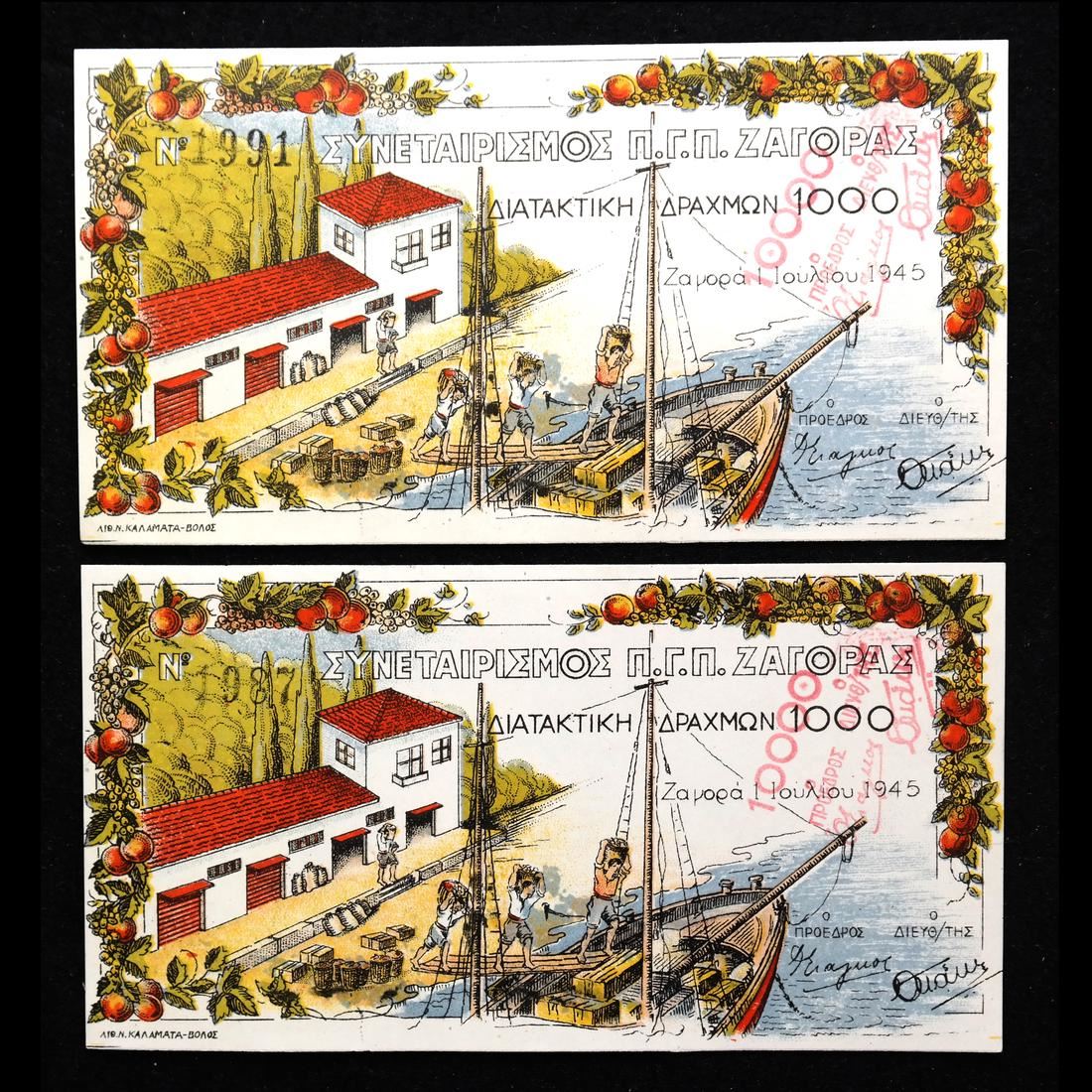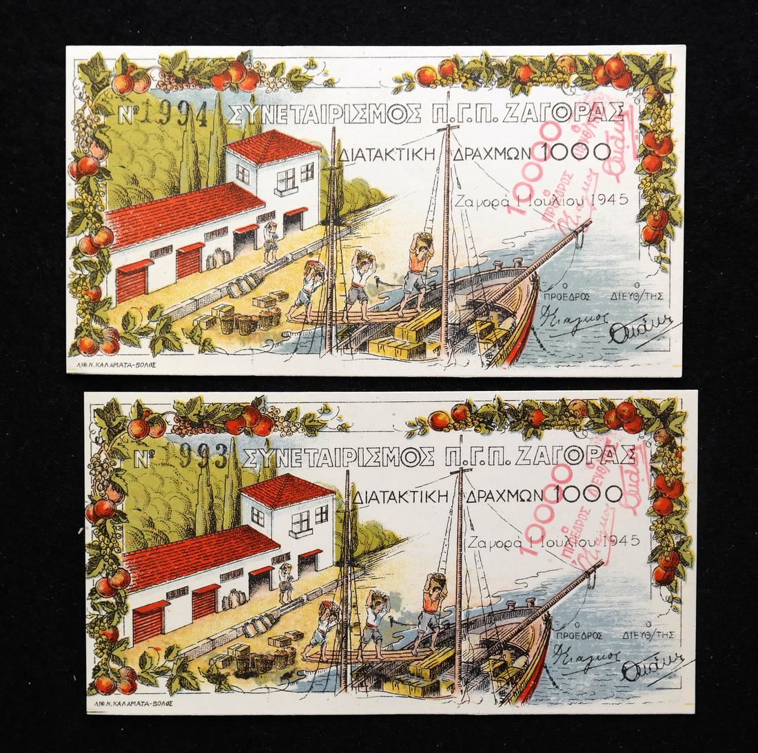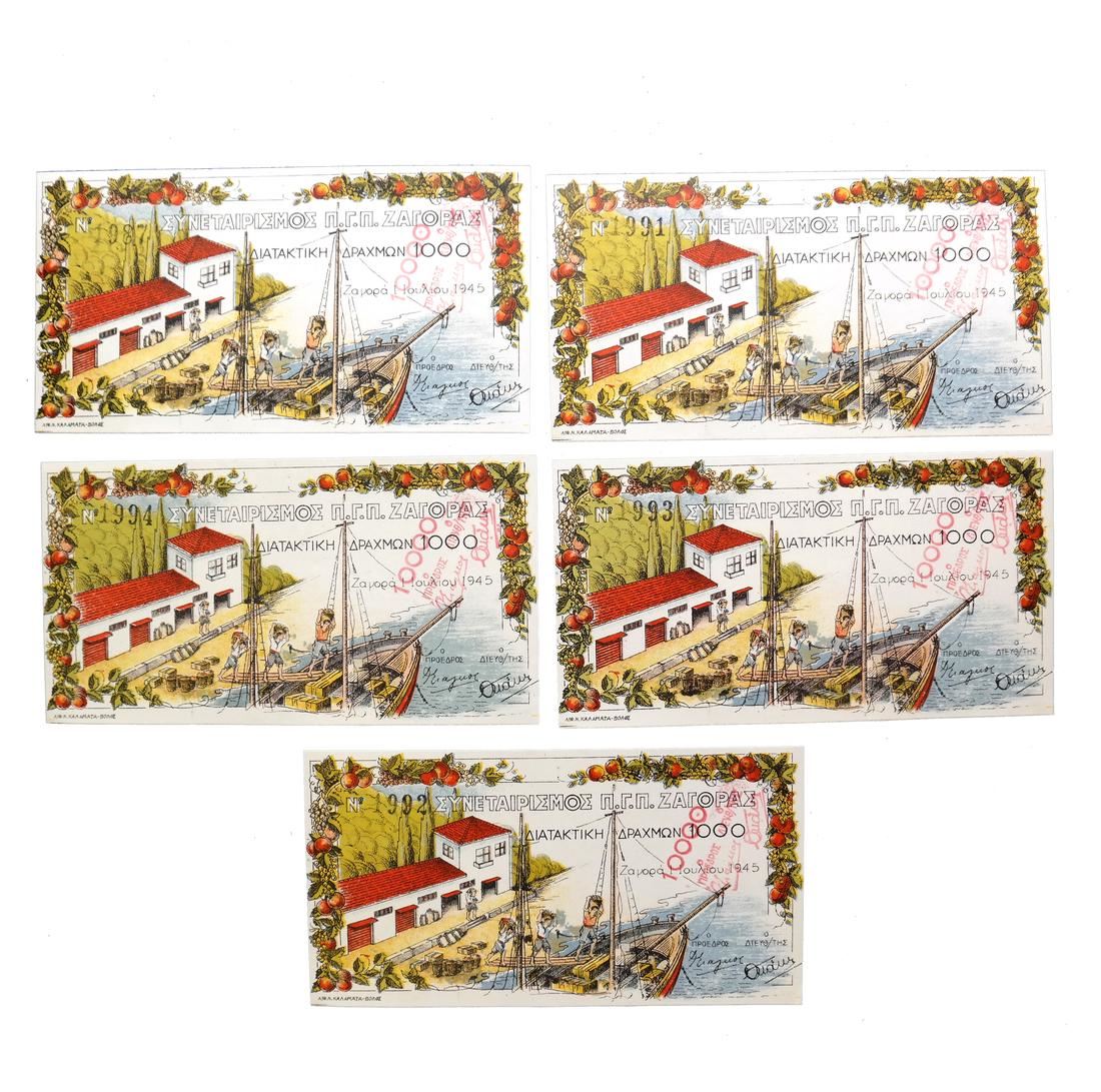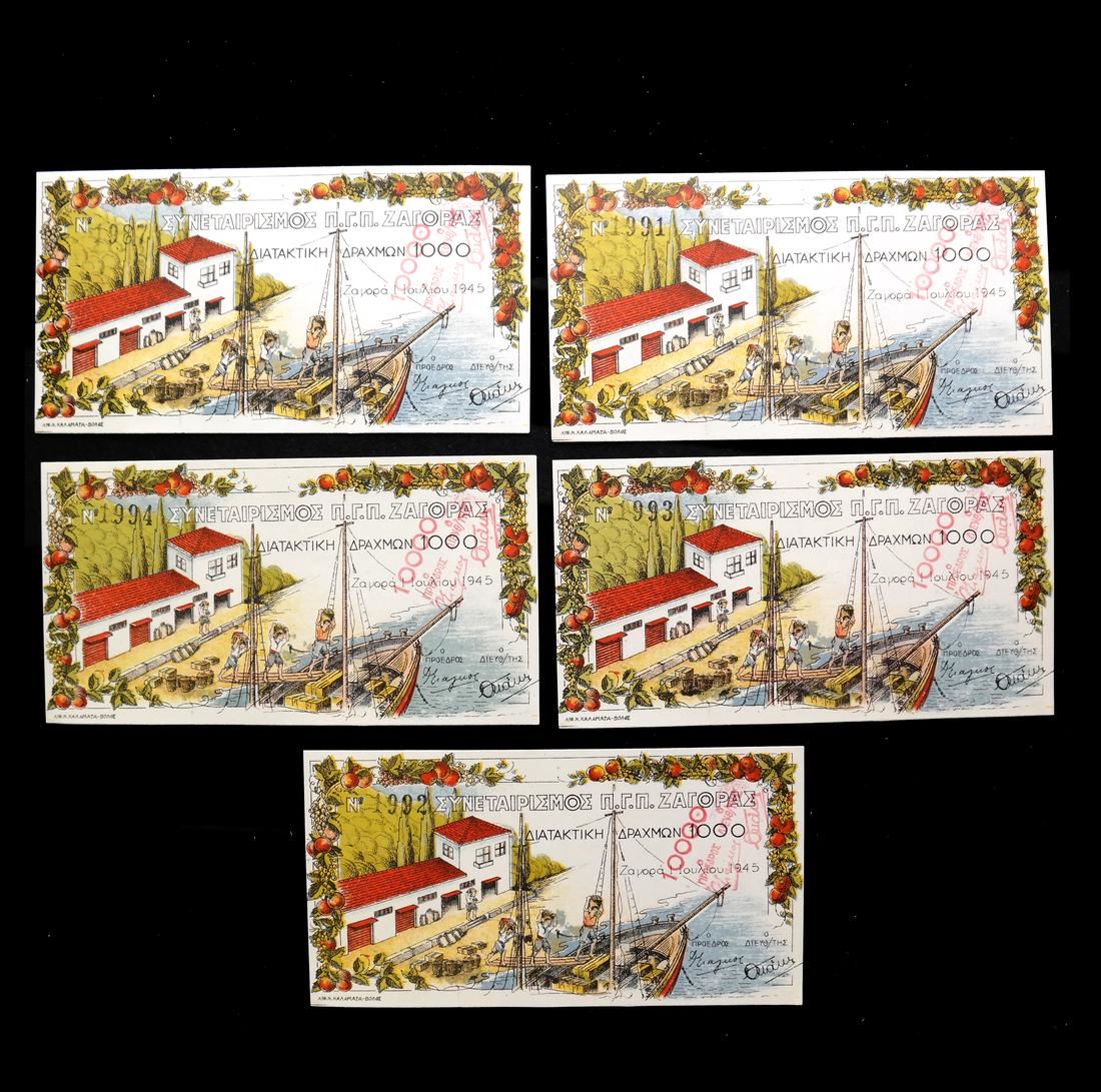 Five (5) examples of the 10000 on 1000 value (Schwan-Boling 105), serial #1987 and then consecutive #1991, 1992, 1993 and 1994, Uncirculated.