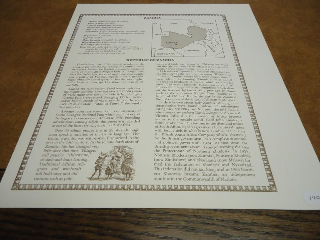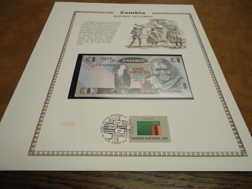 ZAMBIA 1 KWACHA CRISP UNC CURRENCY & STAMP SET