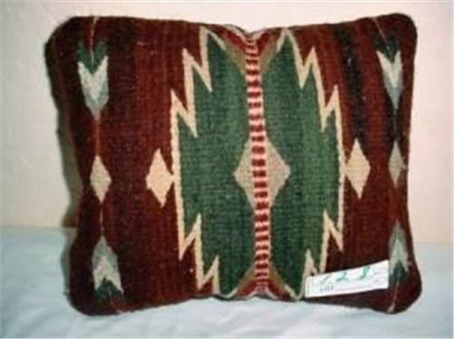 ZAPOTEC INDIAN WOVEN KNIFE EDGE STYLE PILLOW IN 100% WOOL IN AN AZTEC DESIGN. 9"X10"