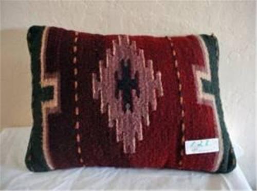 ZAPOTEC INDIAN WOVEN KNIFE EDGE STYLE PILLOW IN 100% WOOL IN AN AZTEC DESIGN. 12"X15"