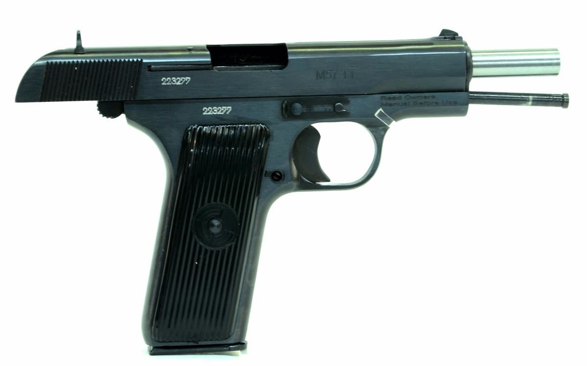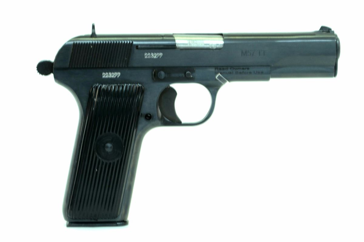 STOCK 2238HR-0052-G1, ZASTAVA, MODEL M57, CAL 7.62 TOK, SEMI-AUTOMATIC, BARREL LENGTH 115MM, COMES WITH BOX, 2 MAGS FIXED SIGHTS, HARD RUBBER GRIPS.CONDITION 8/10 SN. 223XXX