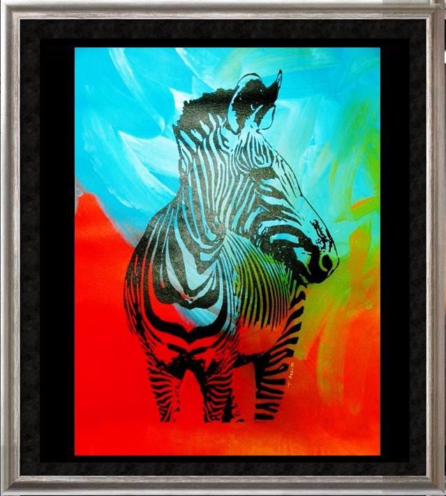Artist: TONY AZZITO | Title of Art: ZEBRA 3359 | Medium: SIGNED ORIGINAL ACRYLIC WITH SILKSCREEN ON CANVAS | Edition Size: Original | Art Size: 37x30 | Offered Unframed. Framing Presentation are often shown for concept only. Read description: If framed, framed size will be given | Value: $ 1000