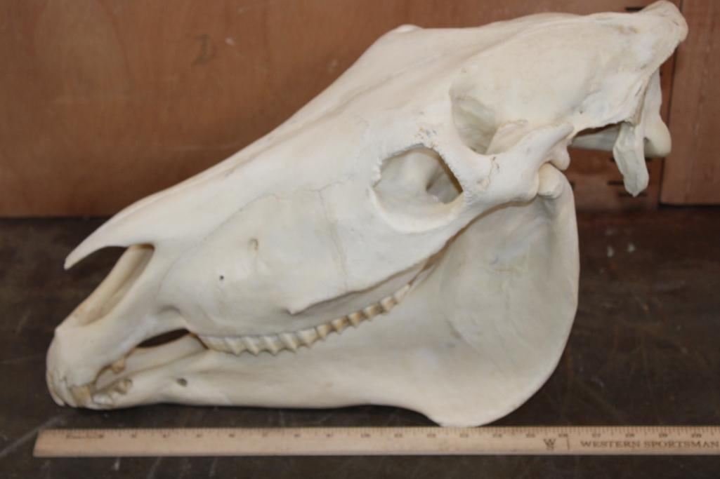 Very Nice ZEBRA Skull with All its Teeth and a Removable Jaw. It measures 19" Long x 8 1/8" Wide x 13" Tall. The Total Weight is 9.1 lbs. TAXIDERMY