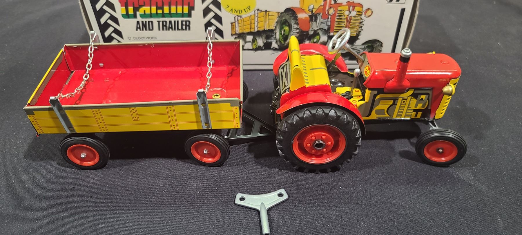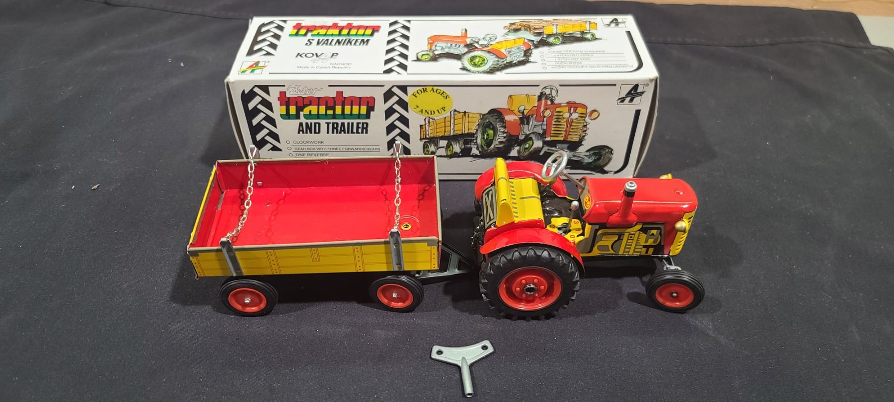 ZETOR TRACTOR & TRAILER - CLOCK WORK GEAR BOX WITH 3 FORWARDS , ONE REVERSE, HAND BREAK, HAS KEY. MADE IN CZECH REPUBLIC