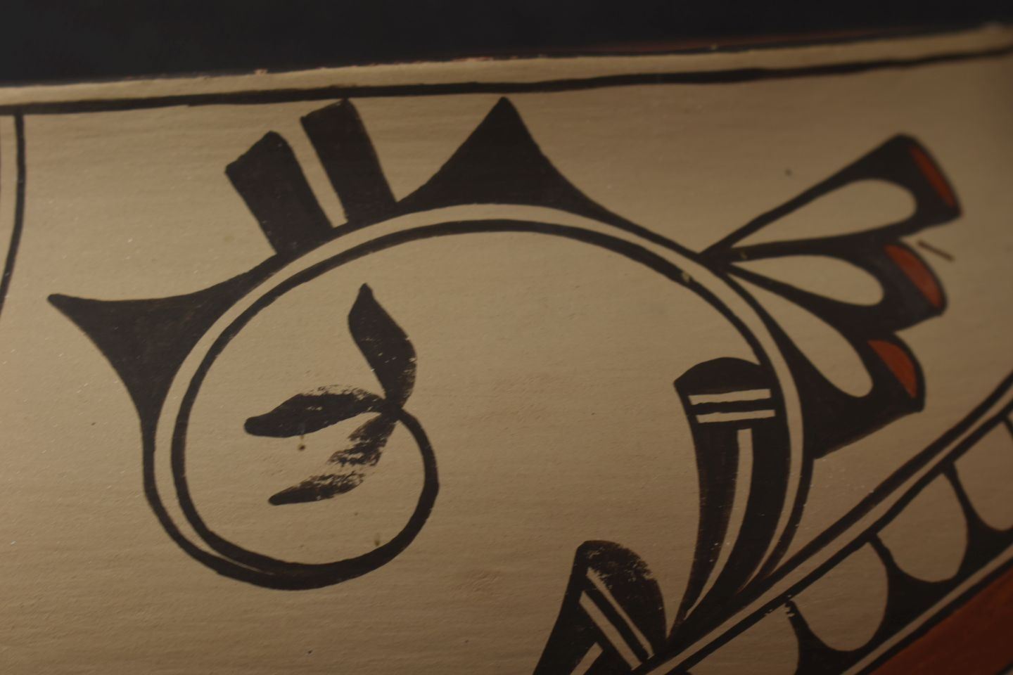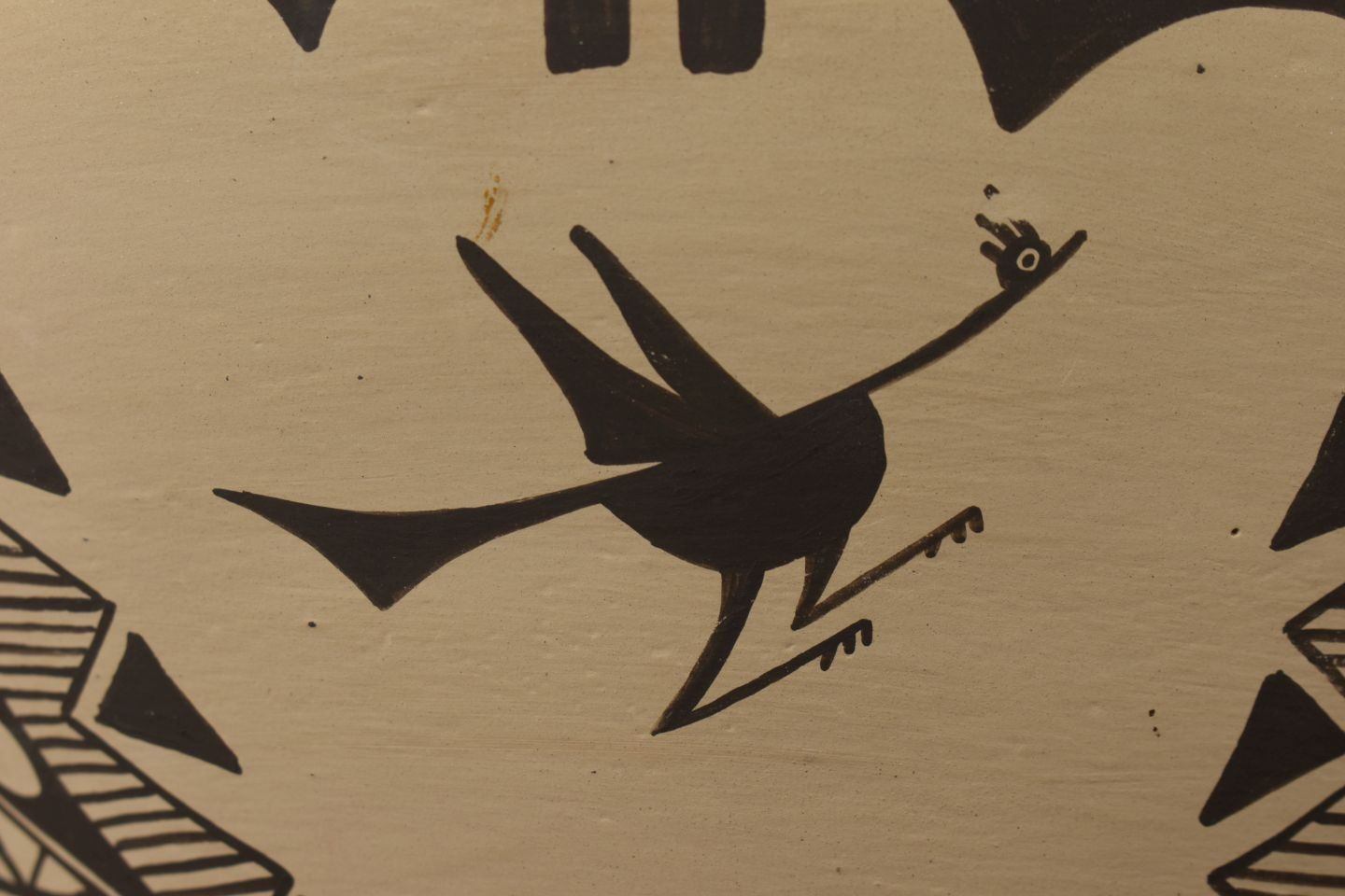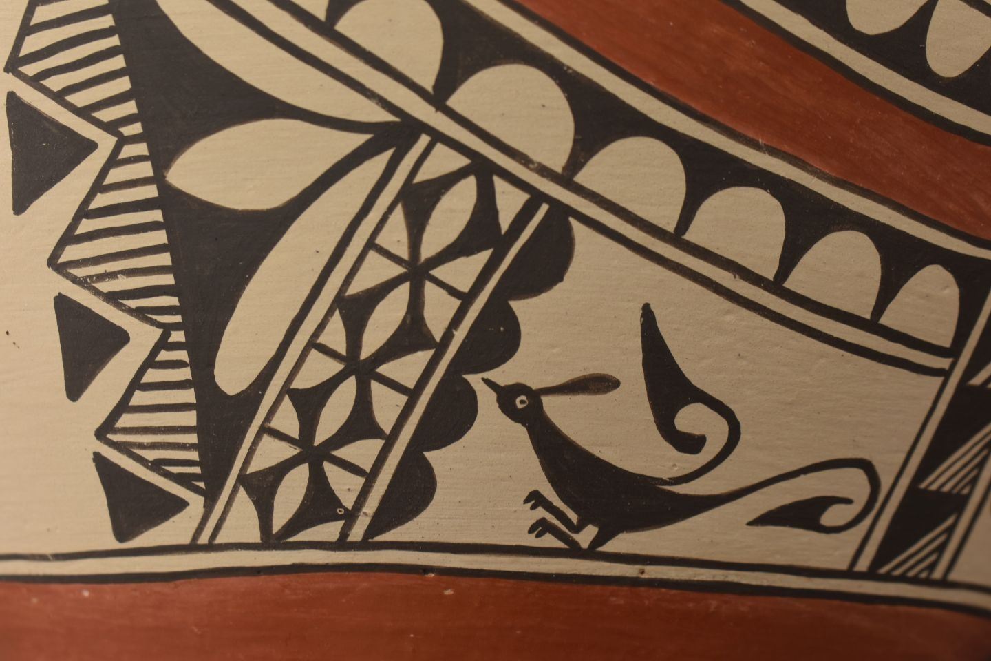 1980's Zia, hand coiled with polychrome painted bird and geometric design by Irene Herrera 8.75" x 11"