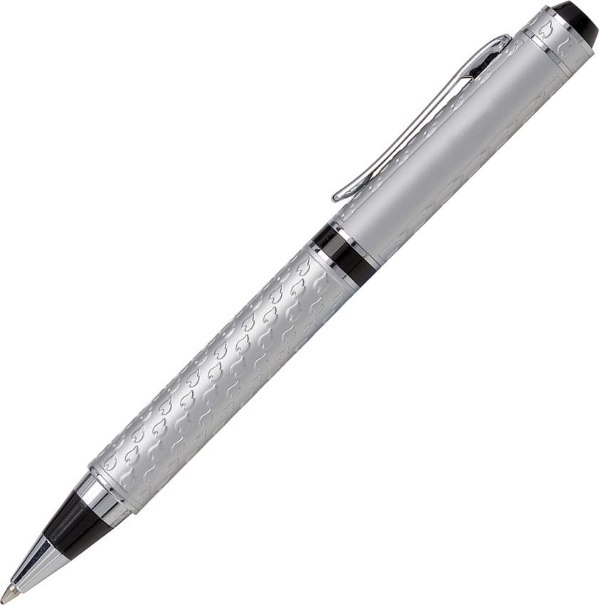 Solid brass Zippo branded flame design with satin chrome finish. High polish chrome accents with black gloss detail. Ballpoint features dual twist action, rigid spring steel clip with Zippo logo