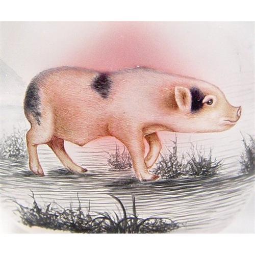 Please note I only ship to Canada and USA and if paypals is used the address MUST BE CONFIRMED.<p>ZODIAC Sign of the PIG Inside Painted Crystal Snuff Bottle... Inside painting at it's finest! Sign of the pig ...opimistic and bountiful signed on the back with the sign of Longevity.