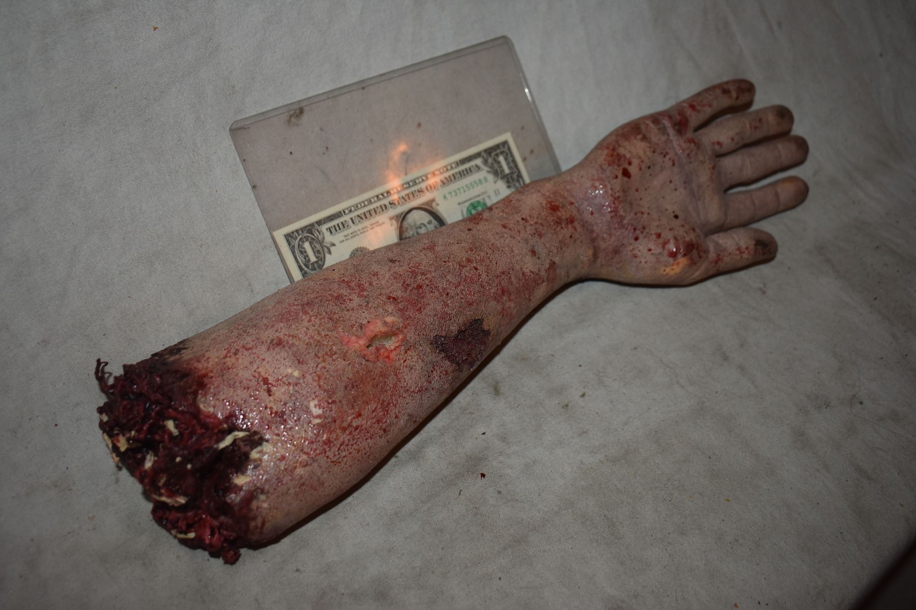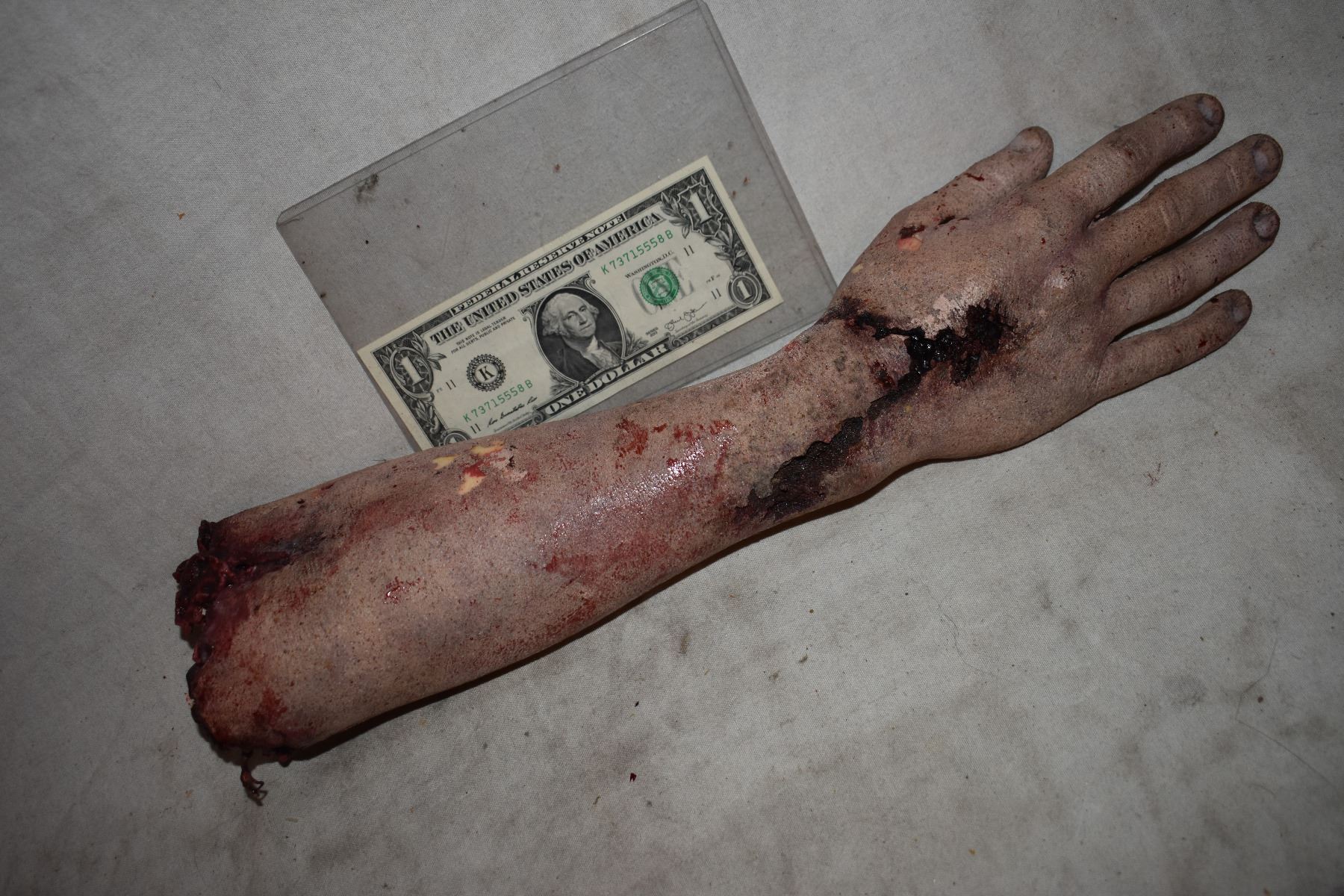 ZOMBIE CHEWED SEVERED ARM WITH HAND.