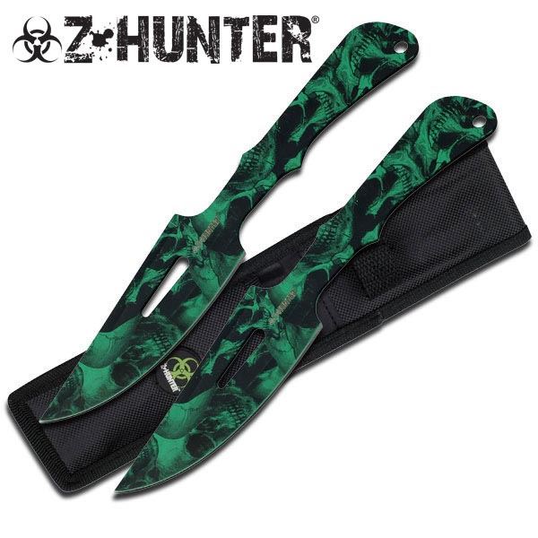 ZOMBIE HUNTER EDITION GREEN SKULLS CAMOUFLAGE 10" THROW **|**|** ZOMBIE HUNTER EDITION GREEN SKULLS CAMOUFLAGE 10" THROWING KNIVES W/SHEATH