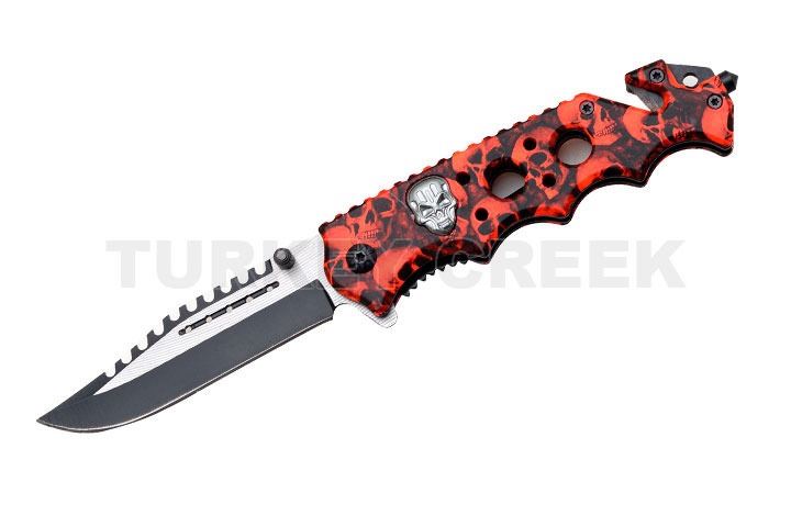 " ZOMBIE " Skull Handle Action Assist Knife Red Skull Camo