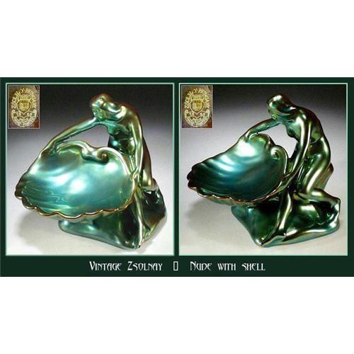 <tr><td>Title:ZSOLNAY VINTAGE ART POTTERY NYMPH & SHELL PT28</td></tr>