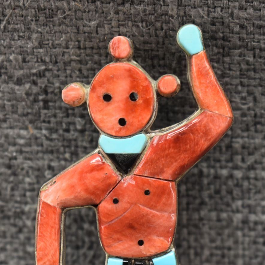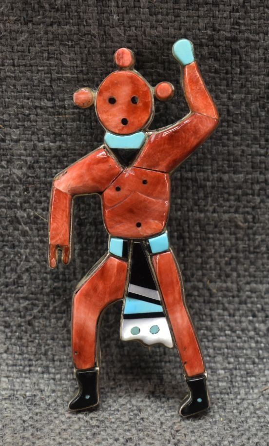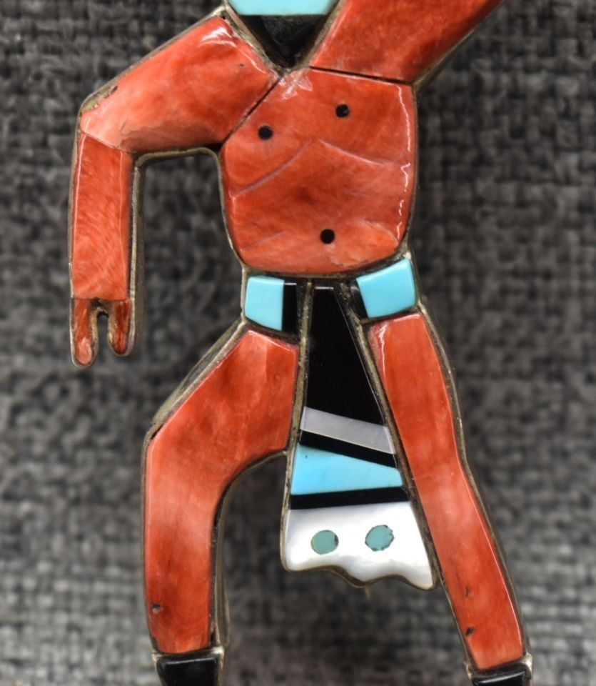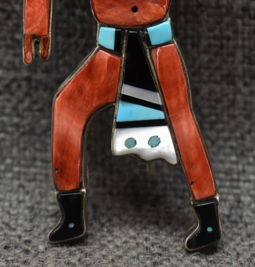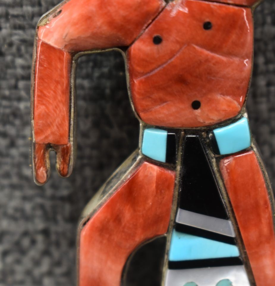 1960's Zuni, sterling silver mosaic inlaid shell turquoise and Jett 3.5" x 1.75" total weight 30 grams
