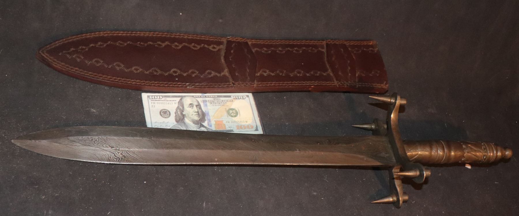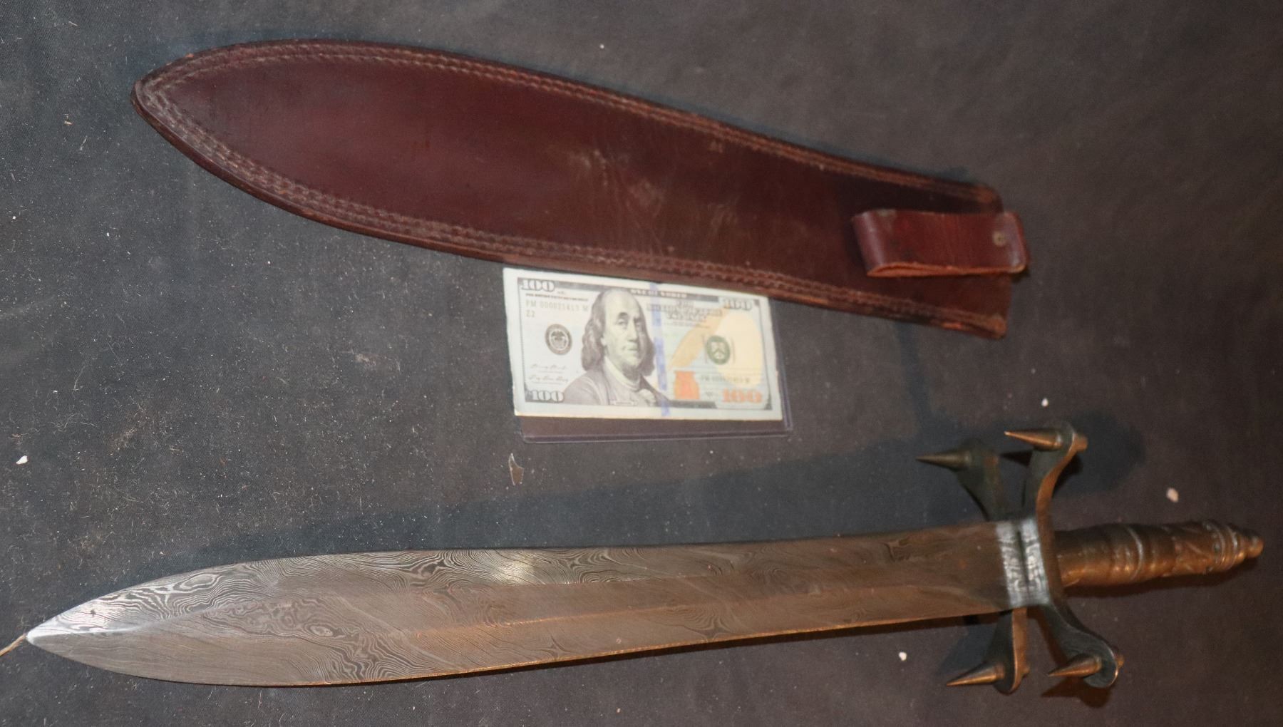BOOK OF FIRE DAMASCUS REAL SWORD WITH LEATHER HEATH!