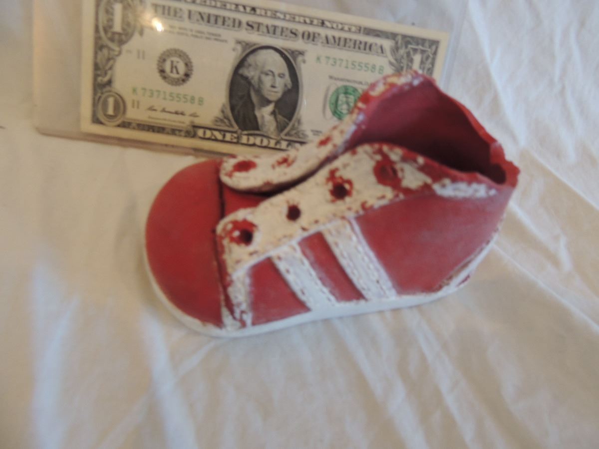 This is an odd left Screen Used Hero shoe worn by the Hero Animatronic Chucky puppet in SEED OF CHUCKY. May have also seen use in CURSE OF CHUCKY!