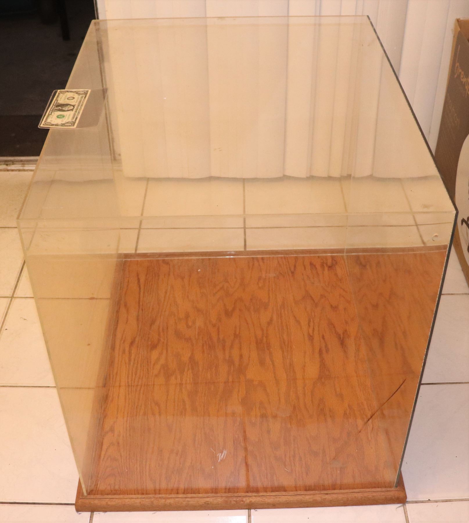 DISPLAY CASE MIRRORED WITH WOOD BASE MUSEUM QUALITY!