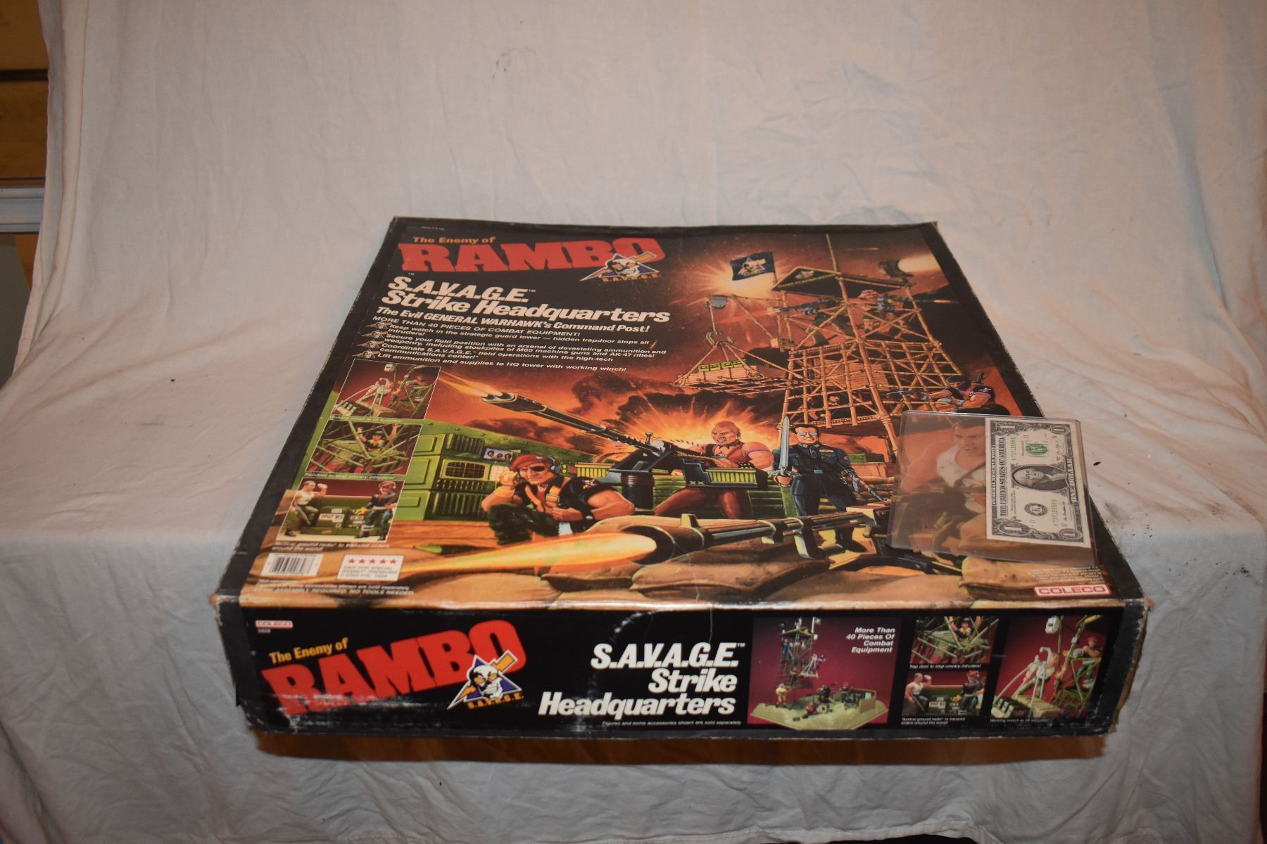 This is a very rare Coleco, THE ENEMY OF RAMBO, S.A.V.A.G.E. STRIKE HEADQUARTERS Action Figure Play Set from 1985! It is in mint condition, and still factory sealed in the original box.