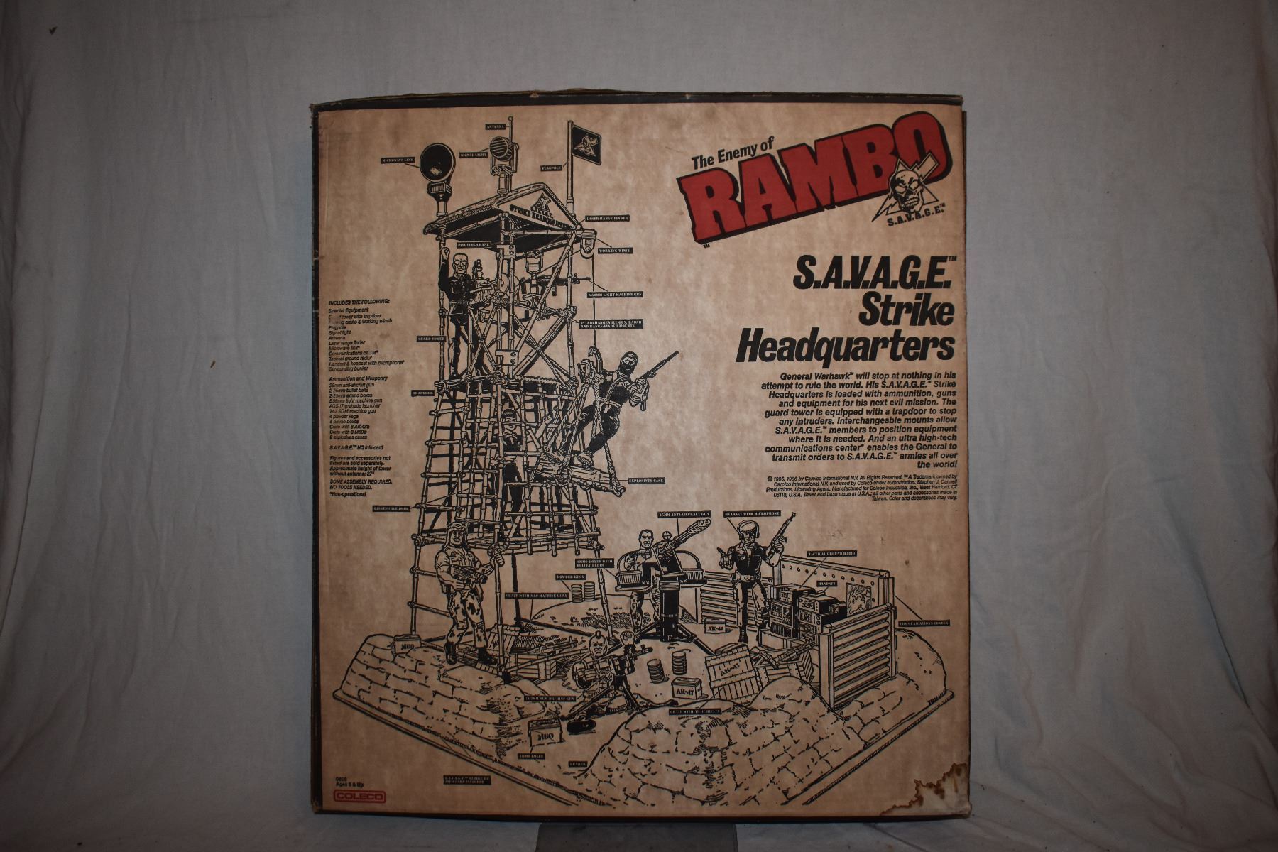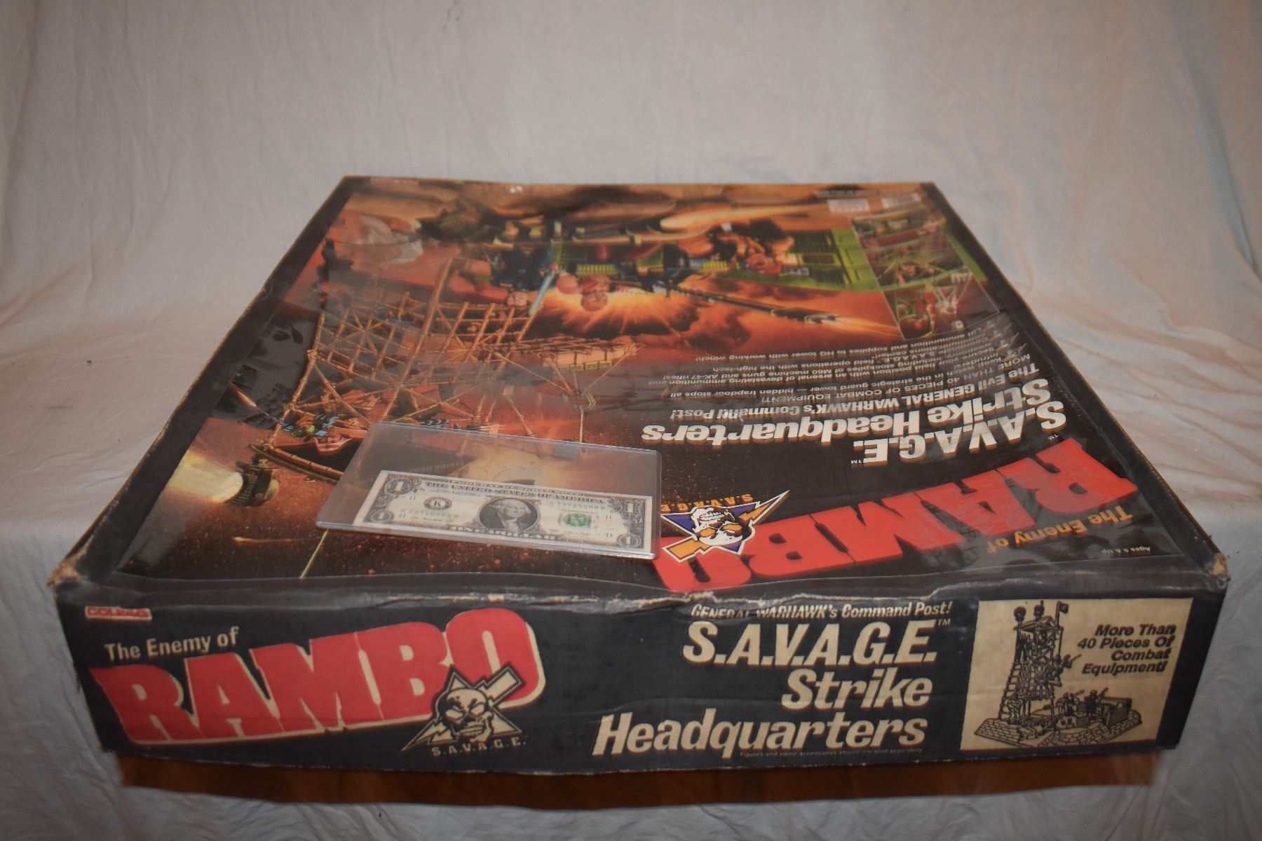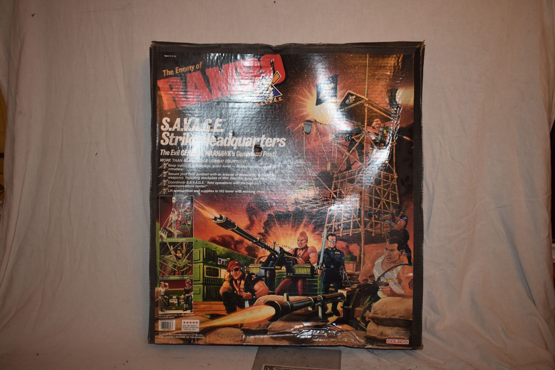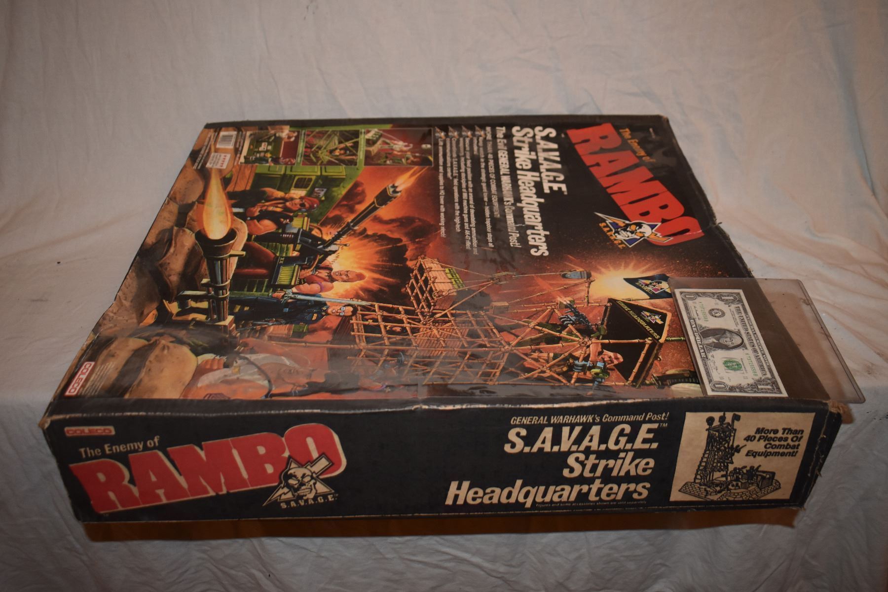 This is a very rare Coleco, THE ENEMY OF RAMBO, S.A.V.A.G.E. STRIKE HEADQUARTERS Action Figure Play Set from 1985! It is in mint condition, and still factory sealed in the original box.