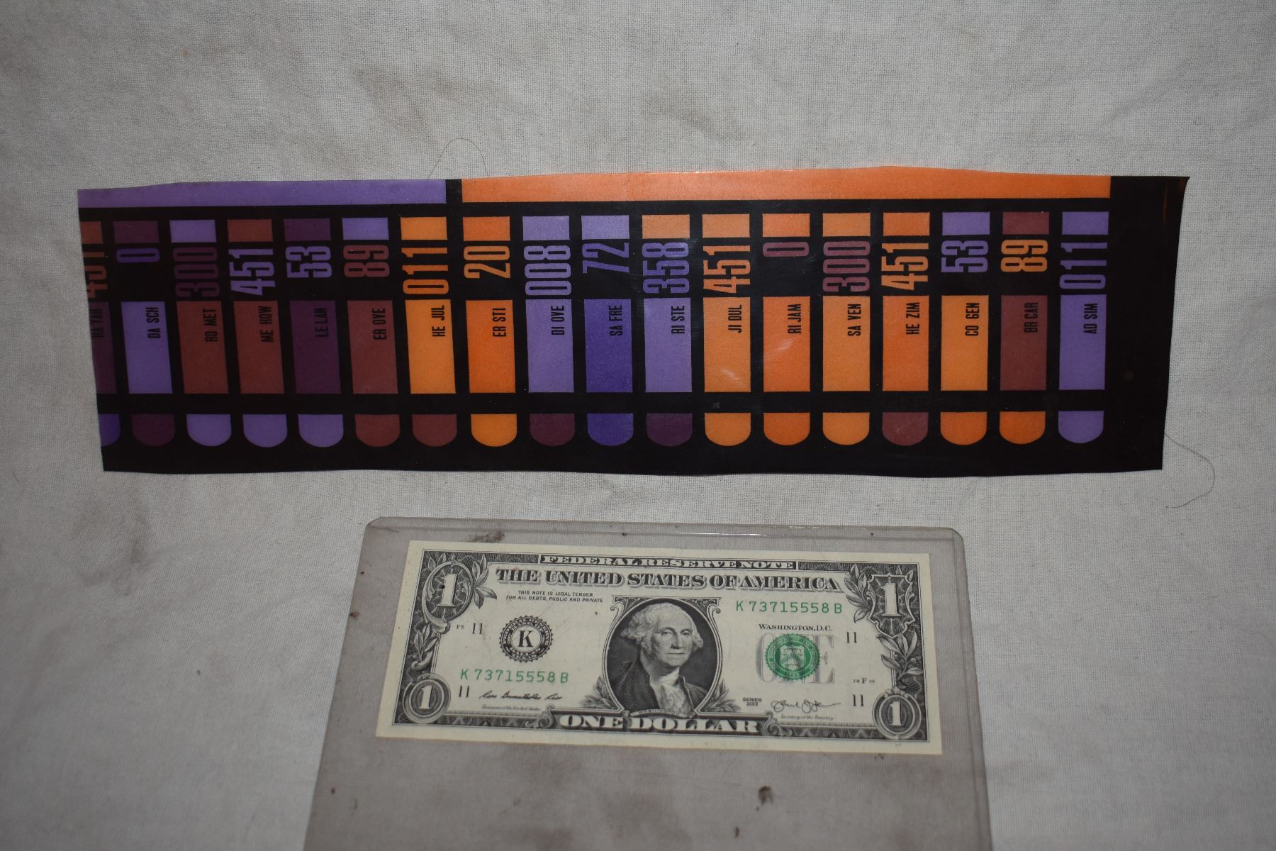 These are all of the STAR SHIP ENTERPRISE CONTROL PANELS. They are cellophane, once taped onto plexiglass, and back lit.