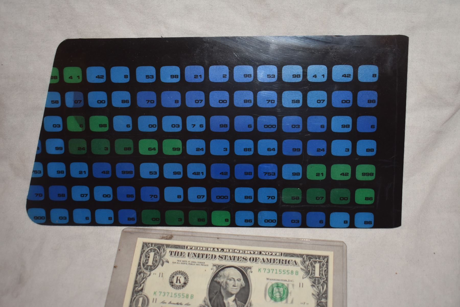 These are all of the STAR SHIP ENTERPRISE CONTROL PANELS. They are cellophane, once taped onto plexiglass, and back lit.