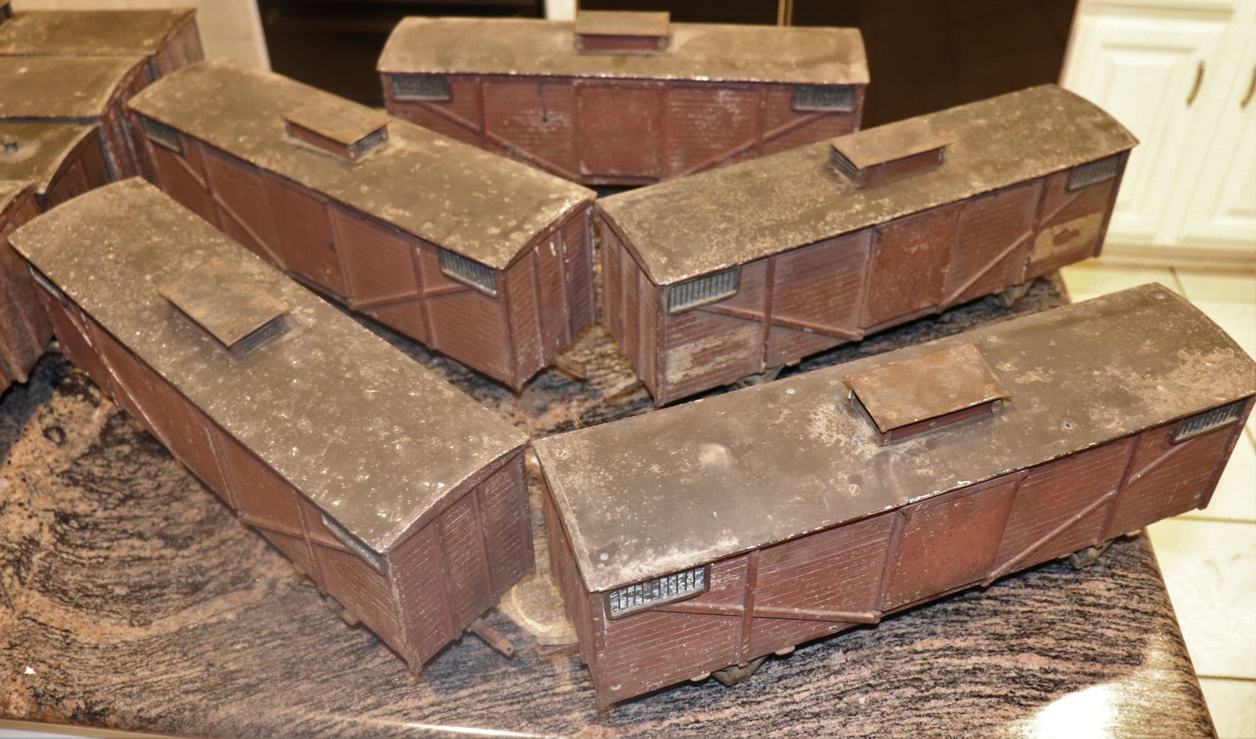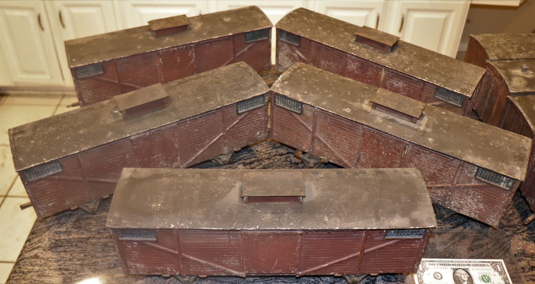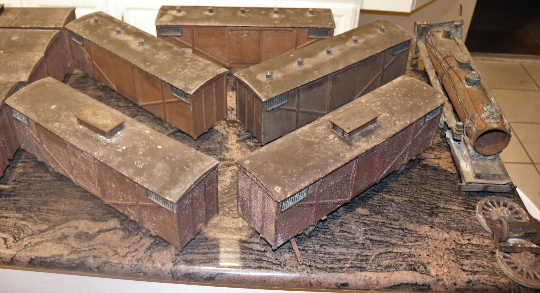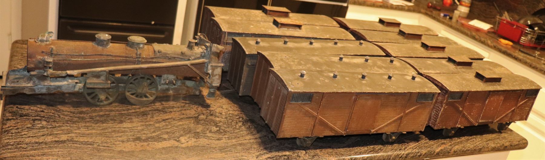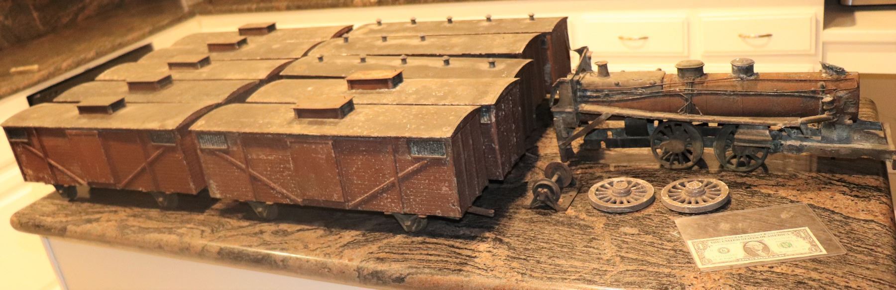 MINIATURE ANTIQUE COMPLETE TRAIN METAL MADE TO LOOK LIKE WOOD