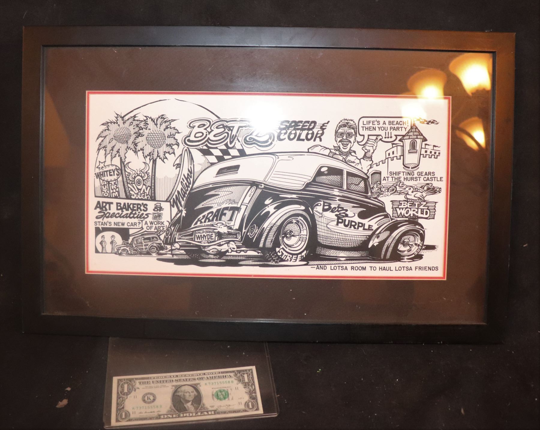VINTAGE HOT ROD SHOP FRAMED PRINT