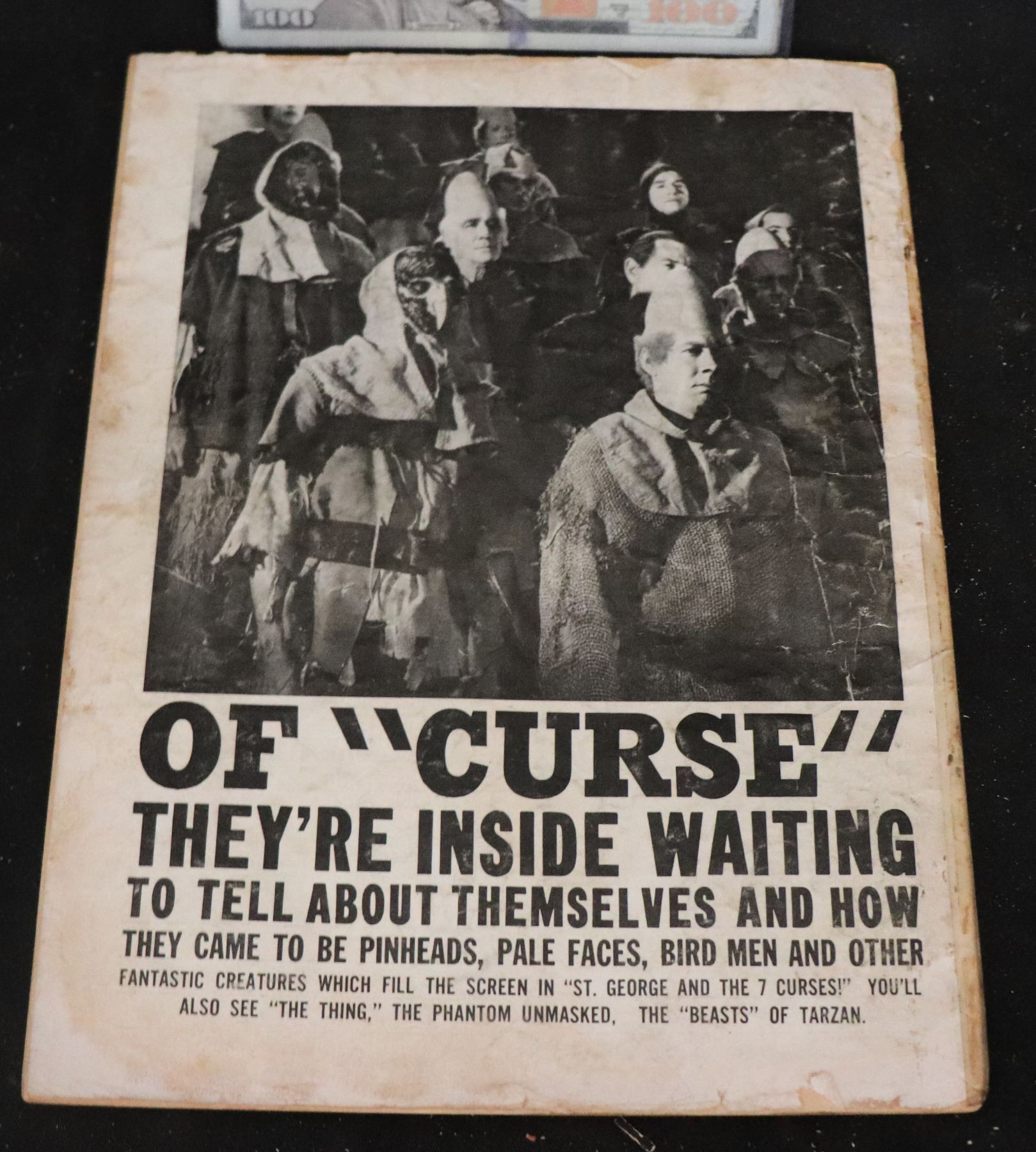 All descriptions, photographs, illustrations, and terminology including but not limited to words describing condition, authorship, period, culture, source, origin, measurement, quality, rarity, provenance, importance, exhibition, and relevance, used in the catalog, bill of sale, invoice, or anywhere else, represent a good faith effort made by HORRORDOMAIN.COM to fairly represent the lots and property offered for sale as to origin, date, condition, and other information contained therein; they are statements of opinion only. HORRORDOMAIN.COM and the Consigner are not responsible for any errors or omissions in the printed or online catalogues, online listings or any other material. It is the Bidder’s responsibility to view the images or fully inspect the property before bidding to determine the condition and size and also to determine if has been repaired or restored. They are not representations or warranties and Bidder agrees and acknowledges that he or she shall not rely on them in determining whether or not to bid or for what price. Price estimates (which are determined well in advance of the auction and are therefore subject to revision) and condition reports are provided solely as a convenience to Bidders and are not intended nor shall they be relied on by Bidders as statements, representations or warranties of actual value or predictions of final bid prices.