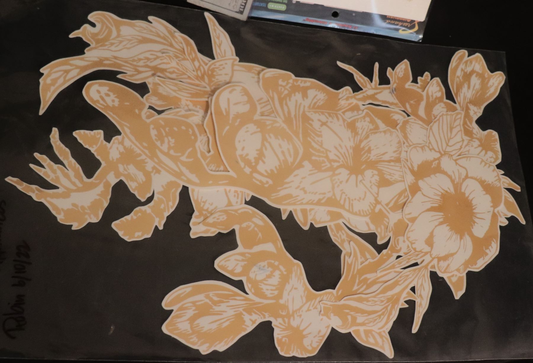 ZZ GOLD FLORAL TRANSFERS AND STENCILS HUGE LOT!