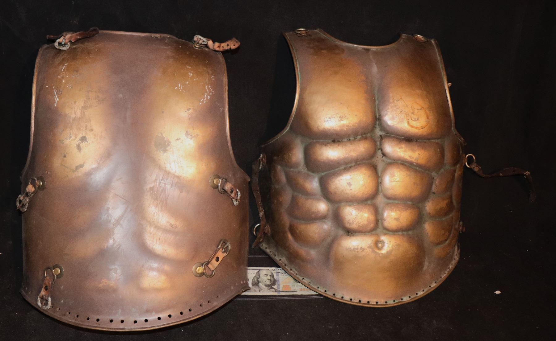 These are old school Prop Department armor made of urethane with metal and leather. Guessing from the 70's? These once had cloth skirts but they are gone!
