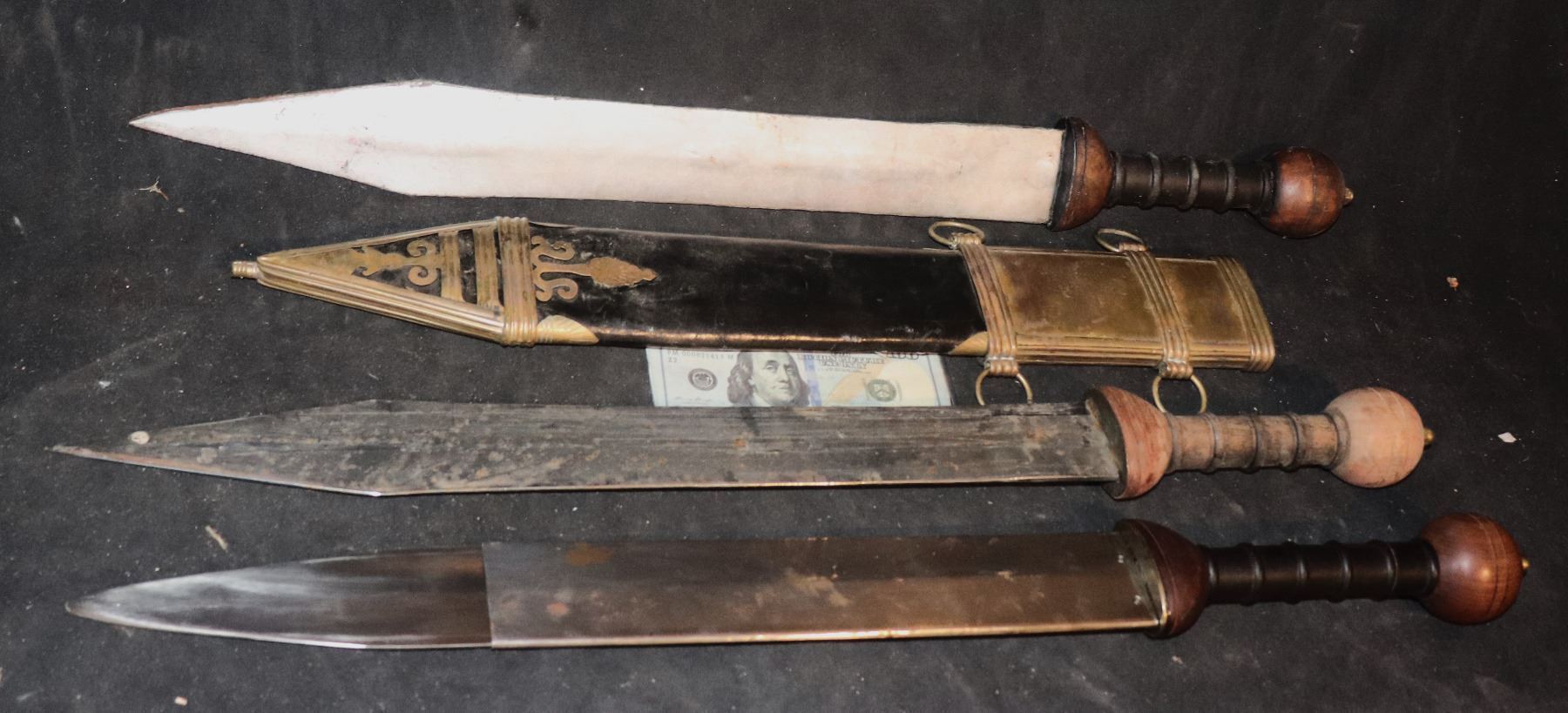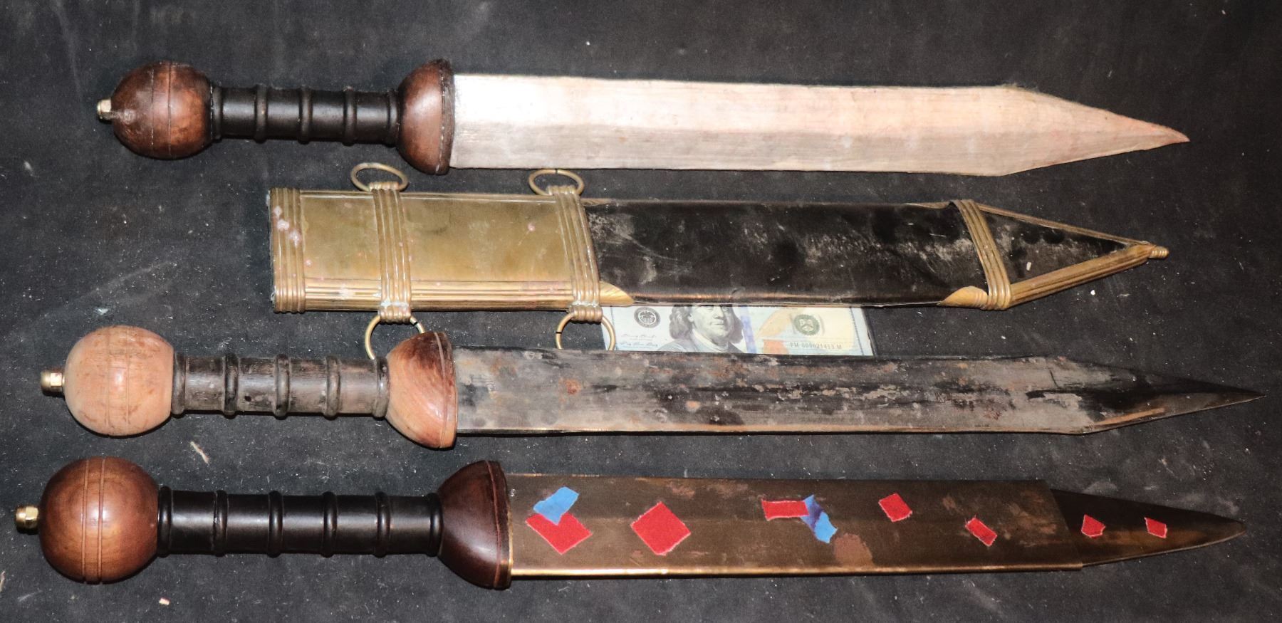 GREEK ROMAN SWORD HERO, RETRACTABLE, AND STUNT WITH LEATHER SHEATH CGI!