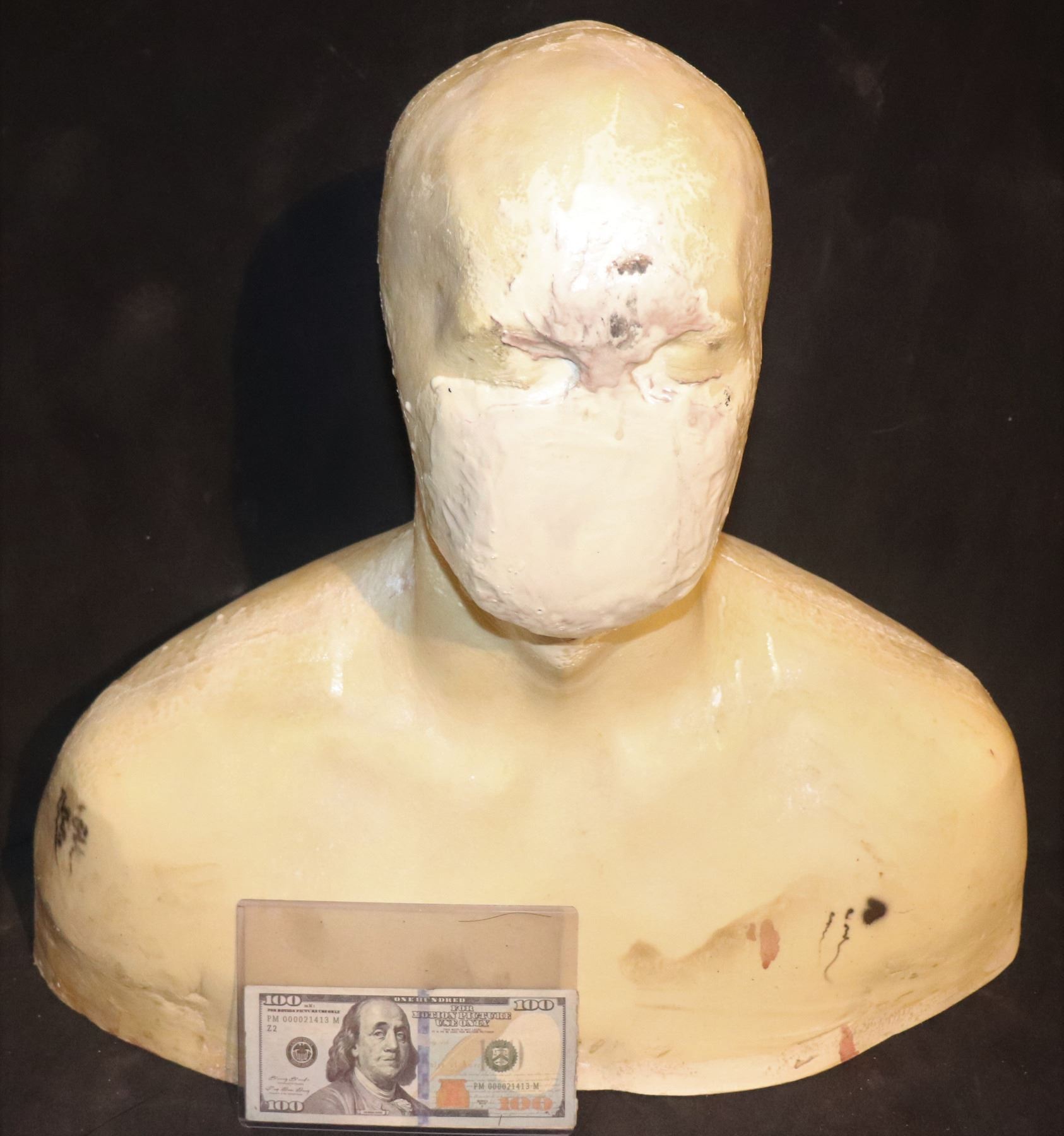 The ears and nose have been shaved for ease in use and to prevent damage to your rare and valuable masks. Busts this good rarely come around! KEEPER QUALITY!