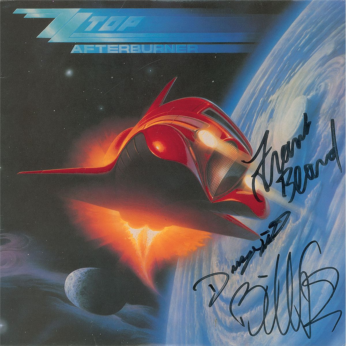 Afterburner album signed on the front cover in black felt tip by Billy Gibbons, Dusty Hill, and Frank Beard. In fine condition. The record is included.