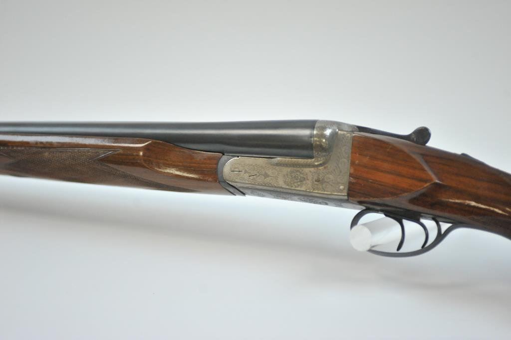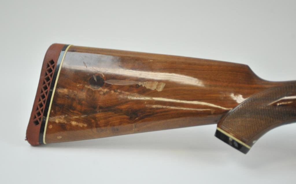 shotgun with 32 1/8” barrels and 49 ½” overall. Measures 13 ¾” to the end of the wood and 14 ½” to the end of the pad. Choked full and full. Very good plus to almost fine. Slight use and minor storage marks. (Modern) Est.: $350-$700