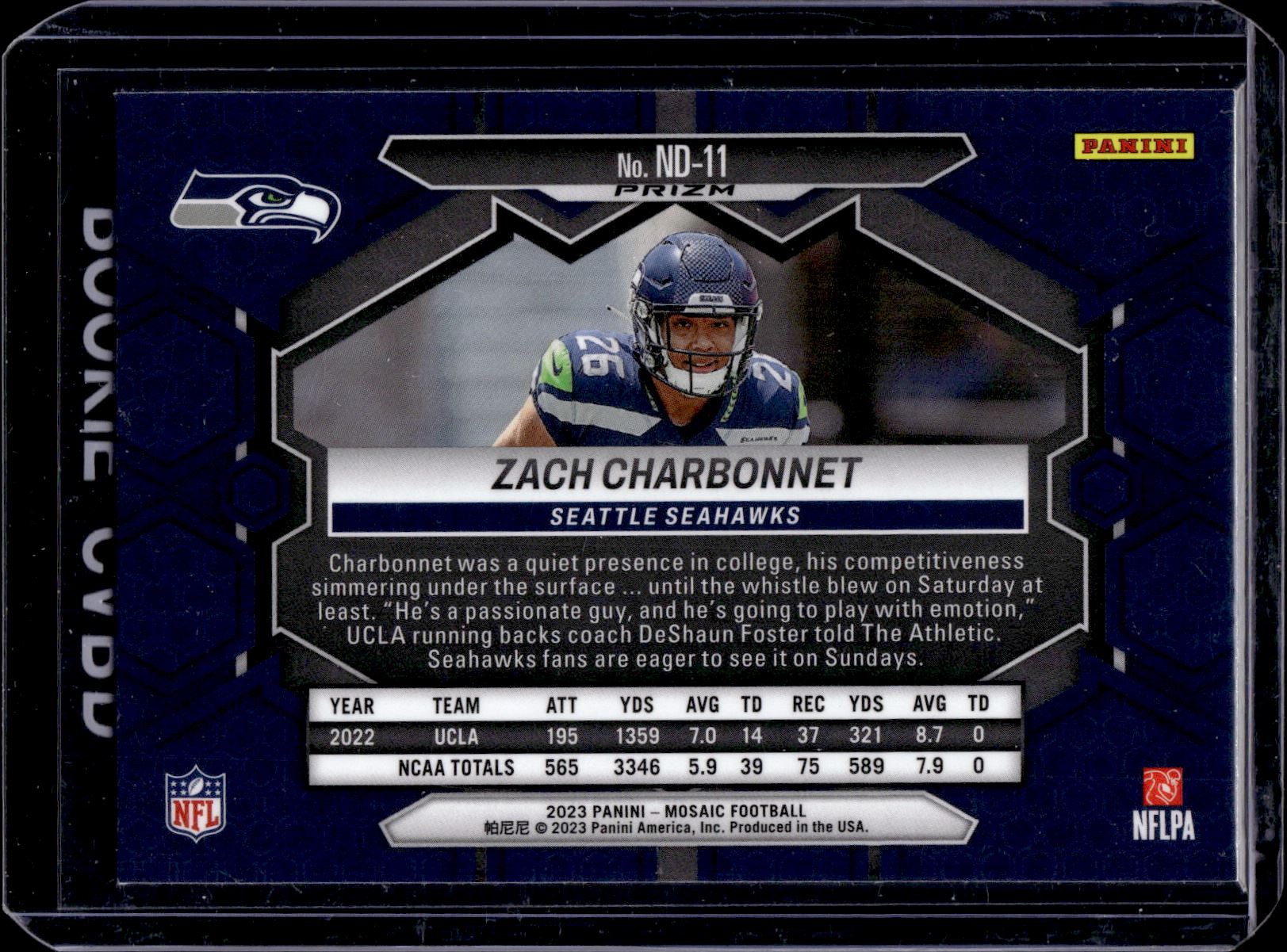 Zach Charbonnet Blue Reactive Prizm RC 2023 Mosaic NFL Debut #ND-11