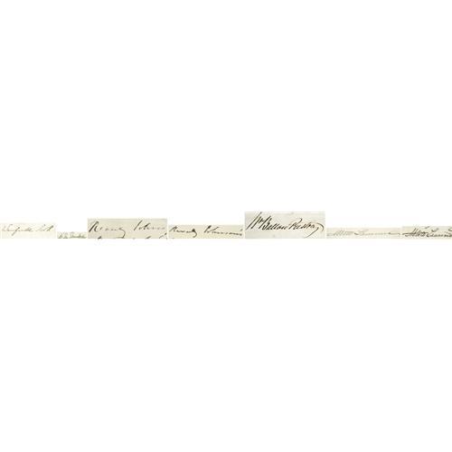 <B>Complete Zachary Taylor Cabinet Autograph Collection.</B></I> Included in this awesome grouping are approximately 25 items signed by various officials and associates from this presidency. Included are: President Zachary Taylor (Signature); Vice President (later President) Millard Fillmore (Signature); Secretary of State John M. Clayton (DS, ALS, Signature); Secretary of the Treasury William Meredith (LS); Secretary of War George Crawford (ANS, DS); Attorney General Reverdy Johnson (ALS, ANS, Signature); Postmaster General Jacob Collamer (Signature); Secretary of the Navy William Preston (LS, AES, Signature); Secretary of the Interior Thomas Ewing (ALS, Signature). <BR><BR>Other notables in this lot: Winfield Scott (Signature); Charles Sumner (AMsS); Truman Smith (ALS); Abbott Lawrence (Signature, ALS); R. A. Ballinger (Signature). <BR><BR>Conditions are generally very good to fine. A collection that might take years to assemble can be yours for one simple bid. From the Henry E. Luhrs Collection. Accompanied by LOA from PSA/DNA.