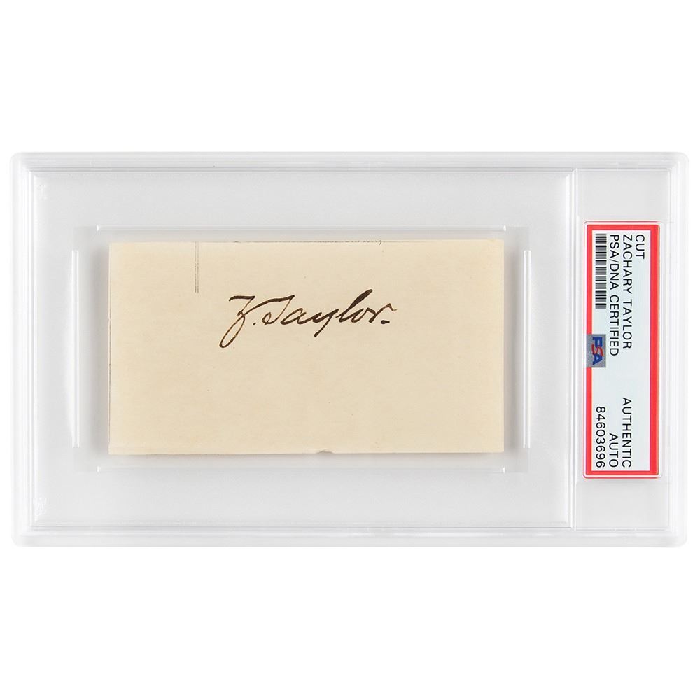 Neat ink signature, "Z. Taylor,†on an off-white 4.25 x 2.25 sheet. In fine condition. Encapsulated in a PSA/DNA authentication holder.