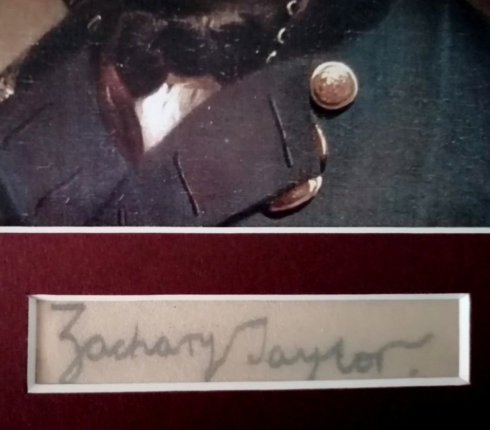 Zachery Taylor signature. Mounted, and framed. Supplied with coa.